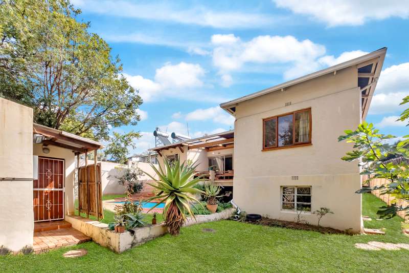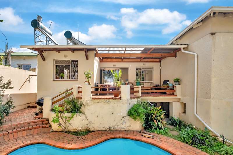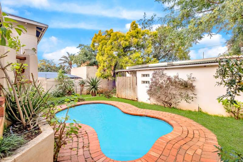 READY FOR THE NEXT OWNERS’ TOUCHES – R1 295 000 – 496 SQM A North facing cosy character home with bay windows, wooden floors and timber finishes Entrance, spacious lounge with bay window and dining area. Wood burning Jet master - radiates and retains heat throughout the whole house. open kitchen with laundry area. Gas stove. Plenty of cupboards. Main bedroom with a downstairs gully bathroom. (shower, basin and toilet). 2 bedrooms. Bathroom. Wooden floors and timber doors. A good size cottage with kitchen countertop and bathroom (shower, toilet, and basin). Patio, garden with swimming pool. Dual entrance with dual driveway parking. Burglar alarm. Electric fence. 2x Solar geyser.
