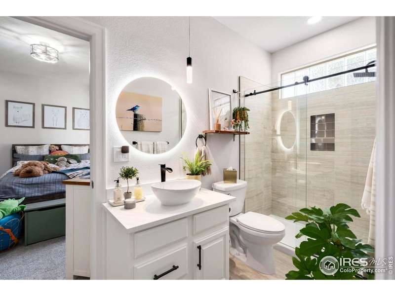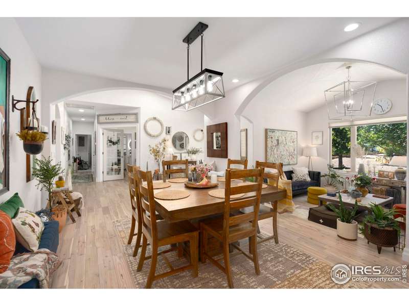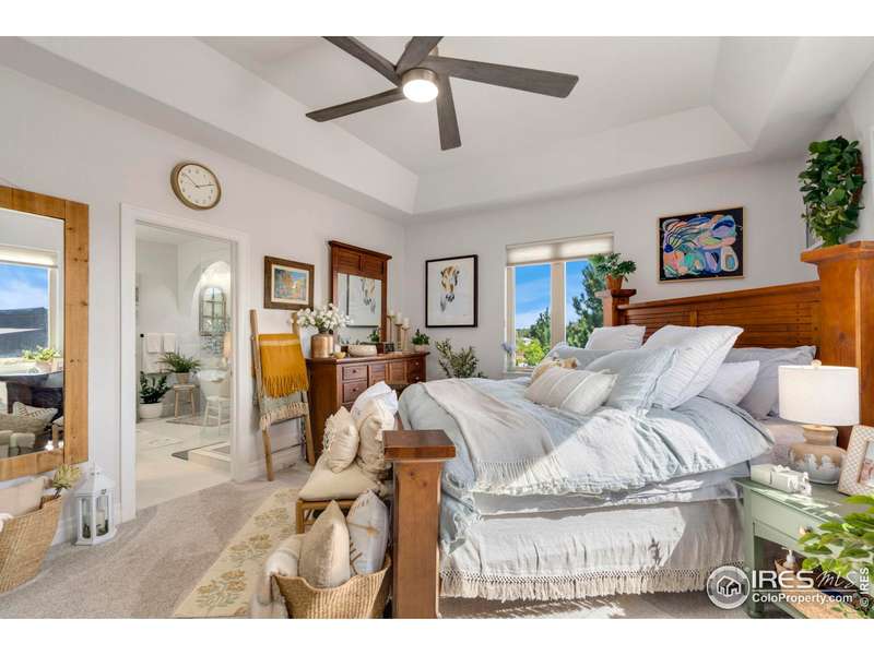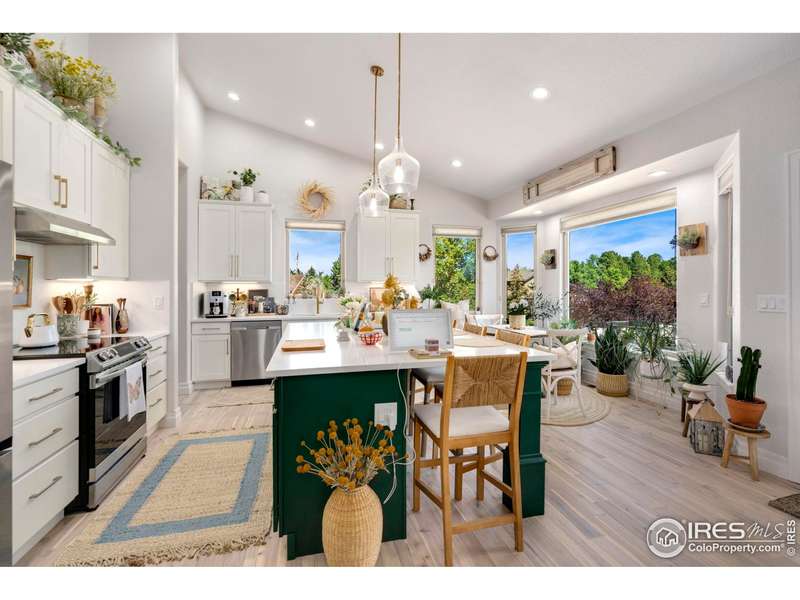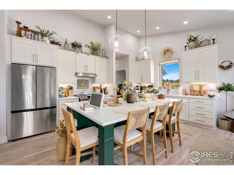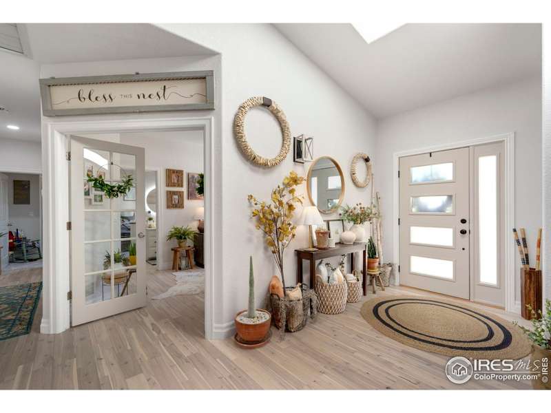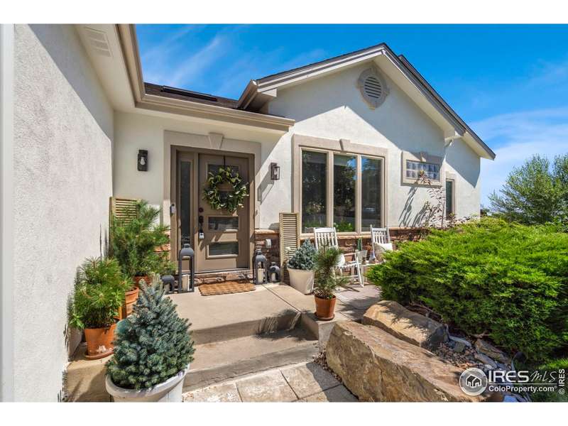 $25,000 SELLER CONCESSIONS! Immerse yourself in the ambiance of this stunning custom ranch home, blending sleek sophistication w/contemporary elegance. Nestled on 2.5 acres w/ mature landscaping, stacked stone walls, new privacy fence along the west side, and a circle drive, this 4,727 sq. ft. ranch offers privacy and designer finishes throughout. A sprinkler system maintains the main landscaped areas, while new acacia wood floors and custom blinds enhance the interiors.The open entryway leads to a formal living room with classic archways and a separate dining room for refined gatherings. A wall of windows floods the family room and gourmet kitchen with light, anchored by a cozy gas fireplace. The chef's kitchen features a massive quartz island, designer backsplash, high-end appliances, & an oversized pantry with abundant shelving. Adjacent is the main-floor laundry w/ washer/dryer, half bath, and pet wash station, conveniently located off the hall to the oversized 2-car garage. Casual dining in the kitchen nook or BBQs on the elevated deck make indoor-outdoor living seamless. French doors open to an office (or 3rd bedroom) with access to a newly updated 3/4 Jack-and-Jill bath shared w/ the 2nd bedroom. The luxurious primary suite boasts a cove ceiling, updated bath w/ standalone tub, dual sinks, and a walk-in closet.The walk-out lower level features a spacious rec room, private theater w/wet bar & wine fridge, 4th bedroom, new carpet, updated 3/4 bath, & ample storage for your gear.Outside, enjoy sunsets from the hot tub under a pergola w/cafe lights, tend the irrigated garden &shed, or collect fresh eggs from the upscale chicken coop. Permitted & zoned for 60'x80' shop. New 2 year roof & radon mitigation system. Central A/C. Vivant security system included. Dog kennel. Abundant wildlife adds to the sense of retreat. Located on coveted Gregory Rd, just mins to Old Town Fort Collins, this home offers the perfect blend of country tranquility and city convenience.