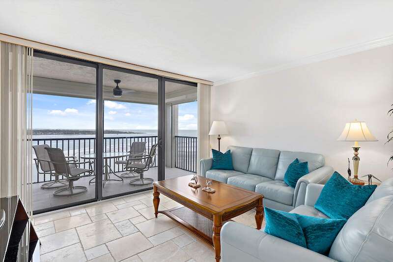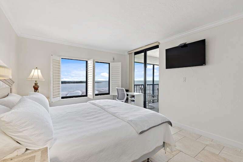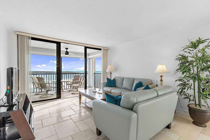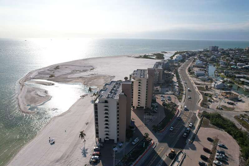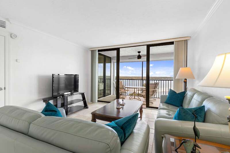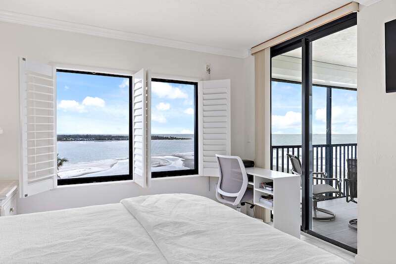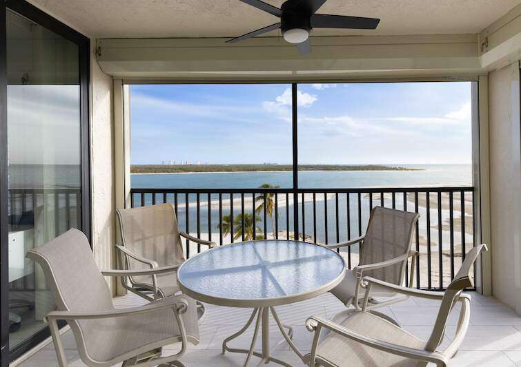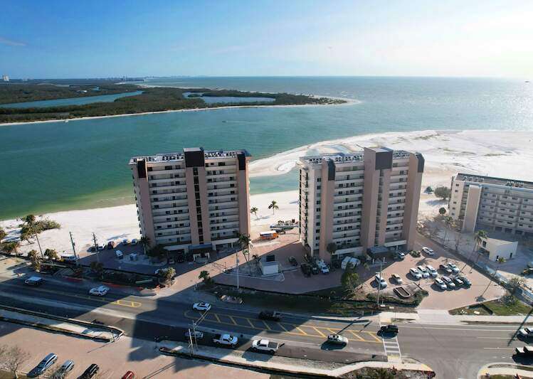 This property offers a perfect blend of stunning PANORAMIC VIEWS and modern amenities. From EVERY WINDOW, you'll be treated to gorgeous vistas of Fort Myers Beach, Lover's Key, and Big San Carlos Pass. The open, END UNIT design allows natural light to flood the space, making it SO BRIGHT and INVITING. The unit has been REMODELED with updated finishes and freshly painted inside and out, giving it a fresh, modern feel. The home is being sold TURNKEY FURNISHED, meaning you can move in and start enjoying the island lifestyle right away. The prime location on the south end of the island ensures easy access off the island, putting you near restaurants, shopping, and entertainment. Relax and take in the Gulf breeze on one of the two lanais. The kitchen is equipped with new, modern appliances, and the property features hurricane impact windows and doors, along with newly added lanai shutters for extra protection. Other upgrades include a newer A/C system and water heater.