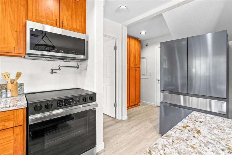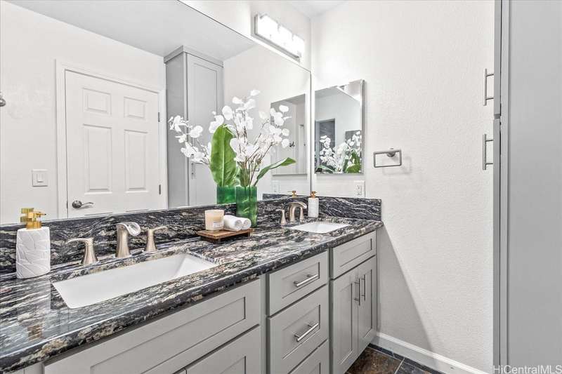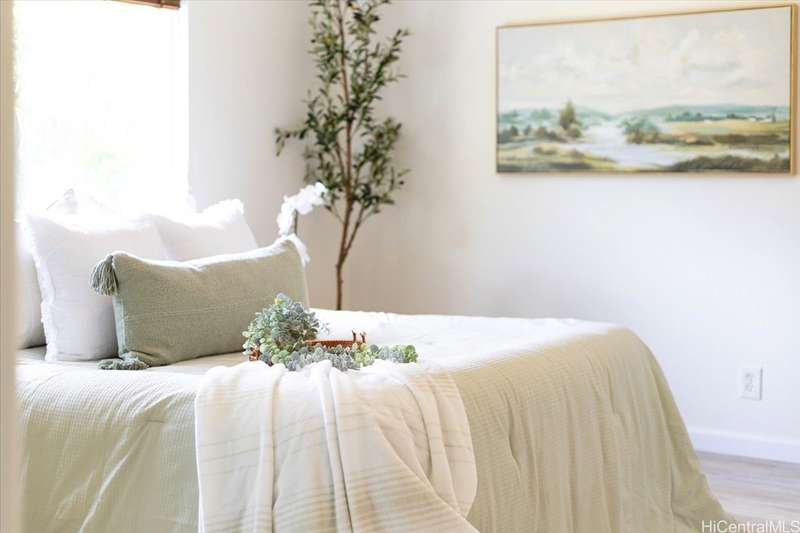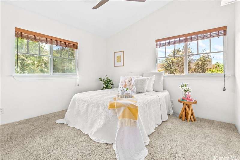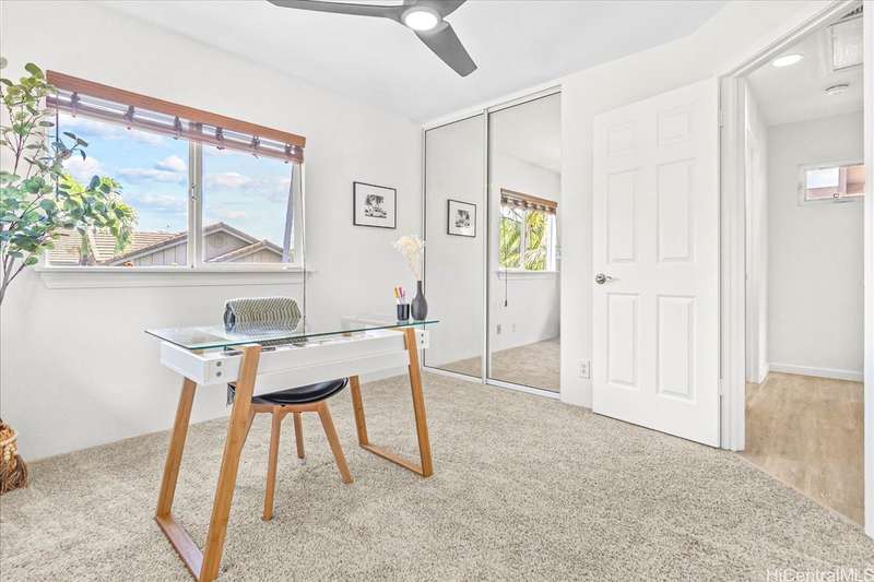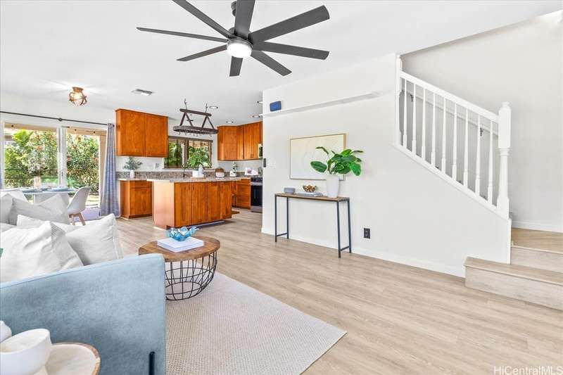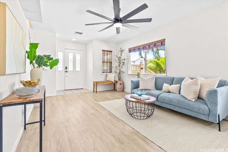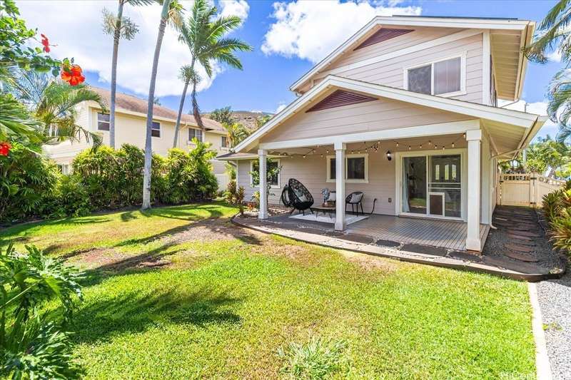 Back on Market - no fault of sellers. Experience elevated island living in this immaculate 4-bedroom, 2.5-bath residence nestled in the coveted Anuhea community of Makakilo. Set on a desirable corner lot within a quiet cul-de-sac, this two-story home offers a thoughtfully designed layout featuring a primary suite on the main level for ultimate comfort and privacy. Enjoy ocean breezes and mountain scenery, and entertain with ease in the fully fenced, professionally landscaped backyard - a perfect retreat for gatherings or peaceful relaxation. Modern touches include leased PV panels, an electric car charging station, and low monthly maintenance fees. Exceptionally clean, well cared for, and move-in ready, this home blends style, function, and Hawaii's natural beauty in one stunning package. VA Assumable Loan at 2.75%! Ask about this incredible financing opportunity. One or more photos been enhanced.