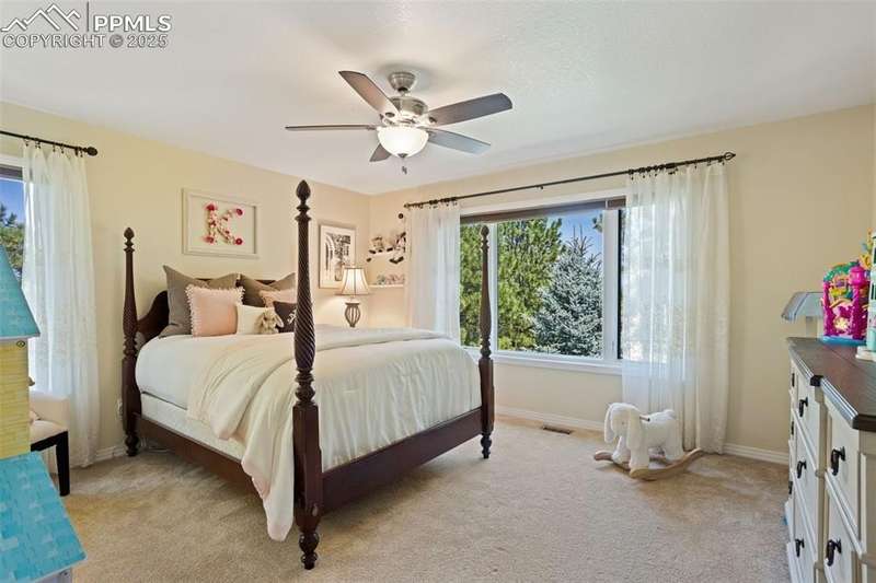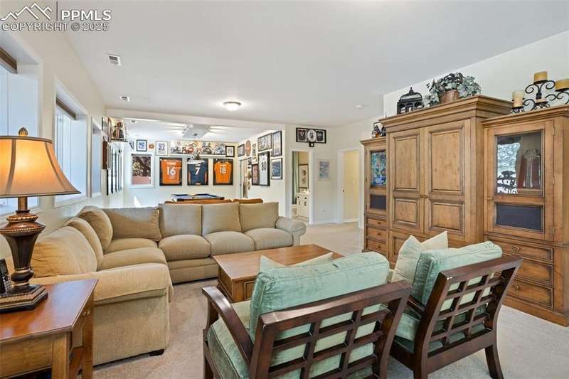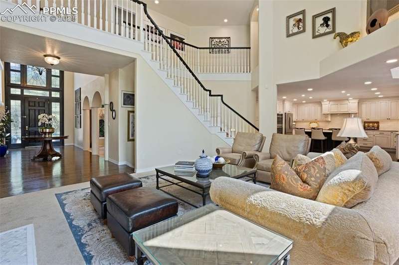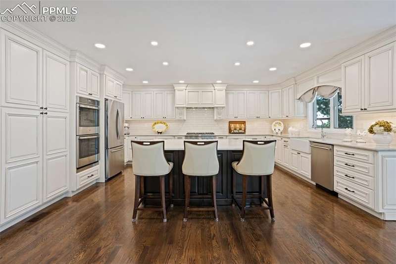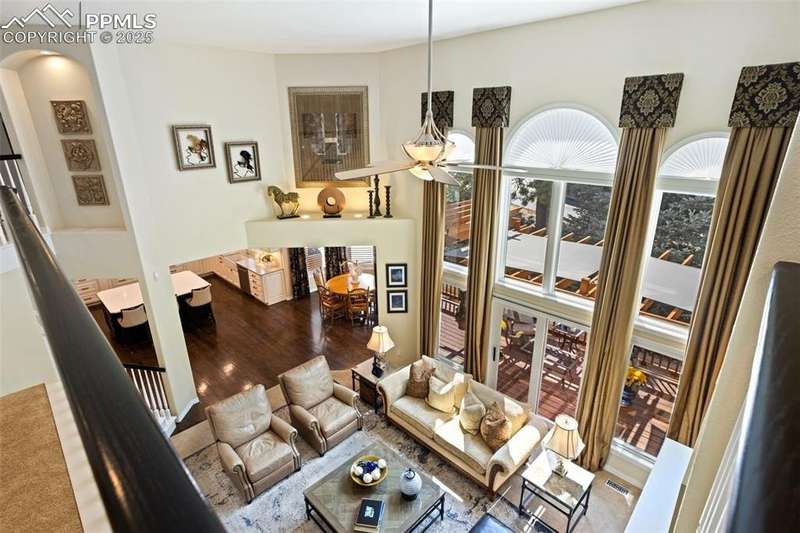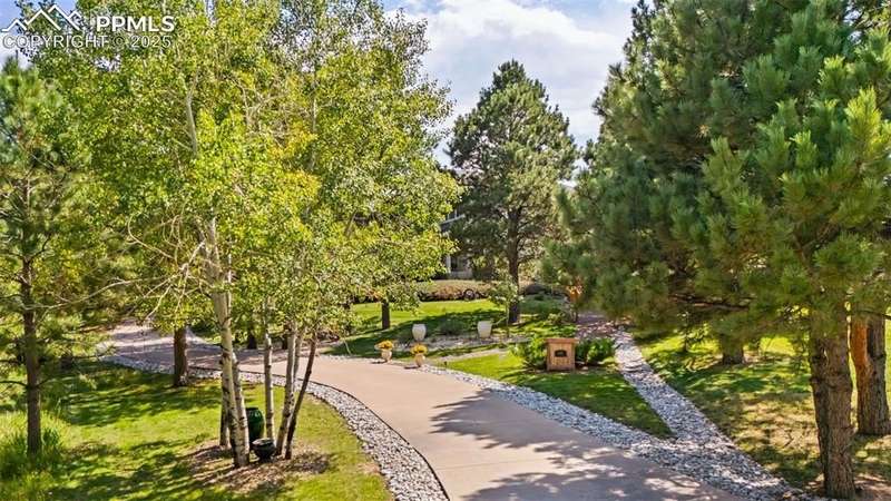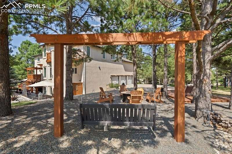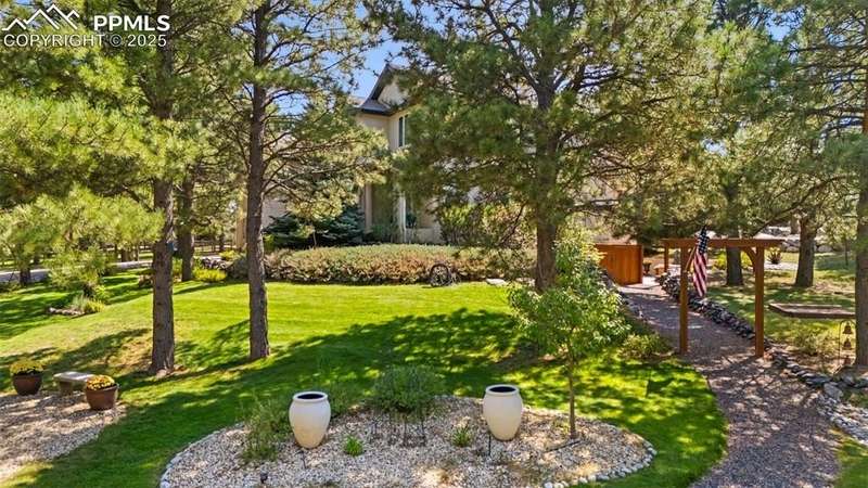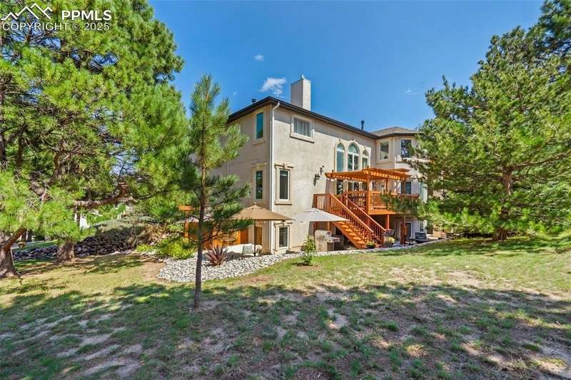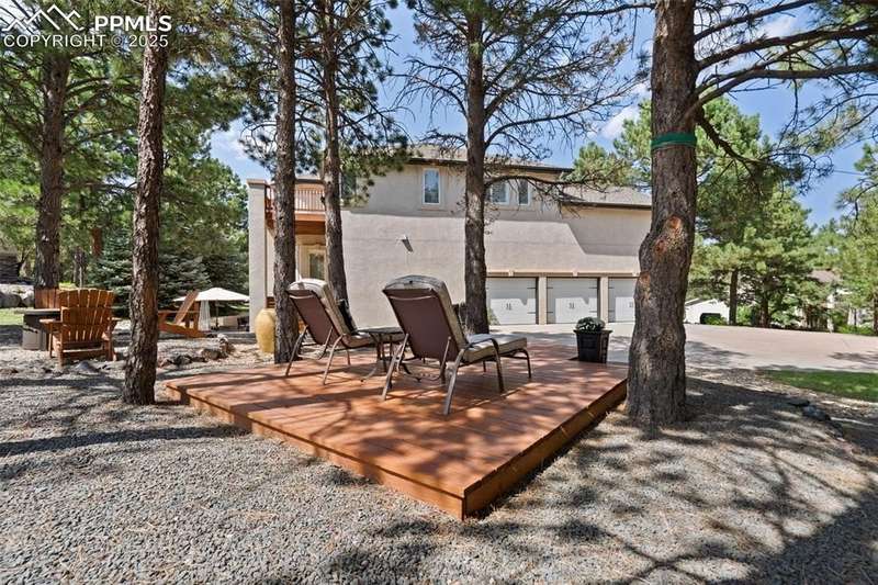 Impressive 2-Story Retreat on a private .76 Acre Lot! Welcome to this exceptional 2-story Woodmoor home, offering the perfect blend of luxury, privacy, and functionality. Nestled on a beautifully landscaped .76-acre treed lot, this residence showcases immaculate curb appeal and thoughtfully designed outdoor spaces, including two decks, a stand-alone entertaining deck, and a cozy fire pit area—all ideal for relaxing or hosting gatherings. Step inside to a majestic foyer with soaring ceilings and hardwood floors, setting the tone for the elegance throughout. The grand family room boasts floor-to-ceiling windows, flooding the space with natural light and serene views. The luxurious dining area flows seamlessly into the chef’s kitchen, which features an oversized uninterrupted island, stainless steel appliances, double ovens, a large gas range with custom hood, farm sink, quartz countertops, and decorative tile backsplash. The eat-in area walks out to a deck with a pergola, creating the perfect indoor-outdoor dining experience. A main-level office/bedroom adds flexibility, while the convenient garage entrance off the kitchen enhances everyday functionality. Upstairs, retreat to the primary suite, complete with a fully remodeled spa-inspired 5-piece bathroom and an enormous walk-in closet with custom built-ins. Three additional bedrooms and 2 full bathrooms complete the upper level. The finished basement expands your living space with a sprawling recreation room, pool table area, and access to a beautiful patio, perfect for entertaining. With central AC and countless updates, this home balances comfort and sophistication in every detail. Don’t miss this rare opportunity to own a private, beautifully appointed home designed for both grand entertaining and everyday living in Monument!