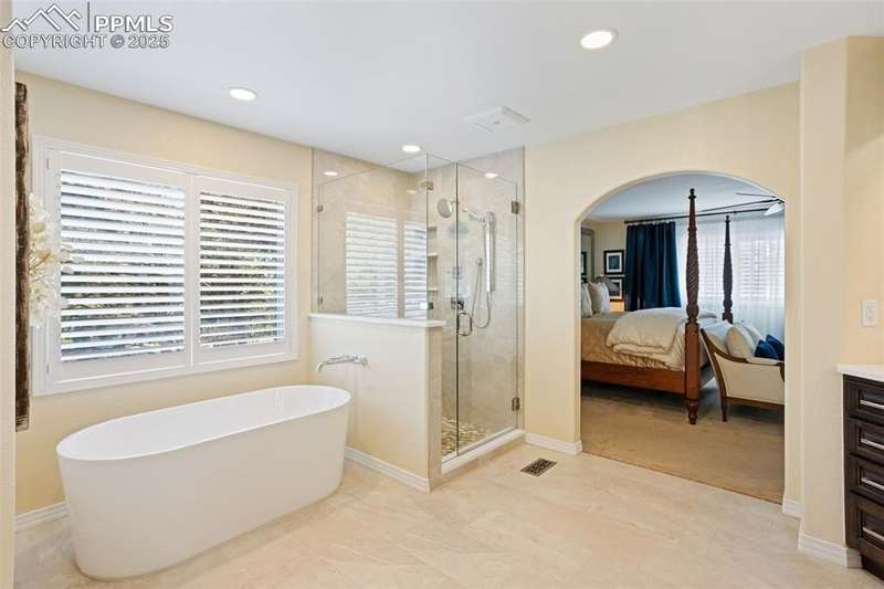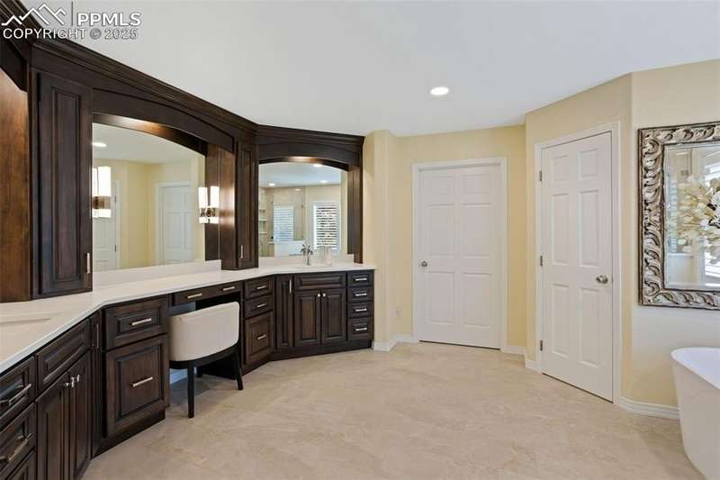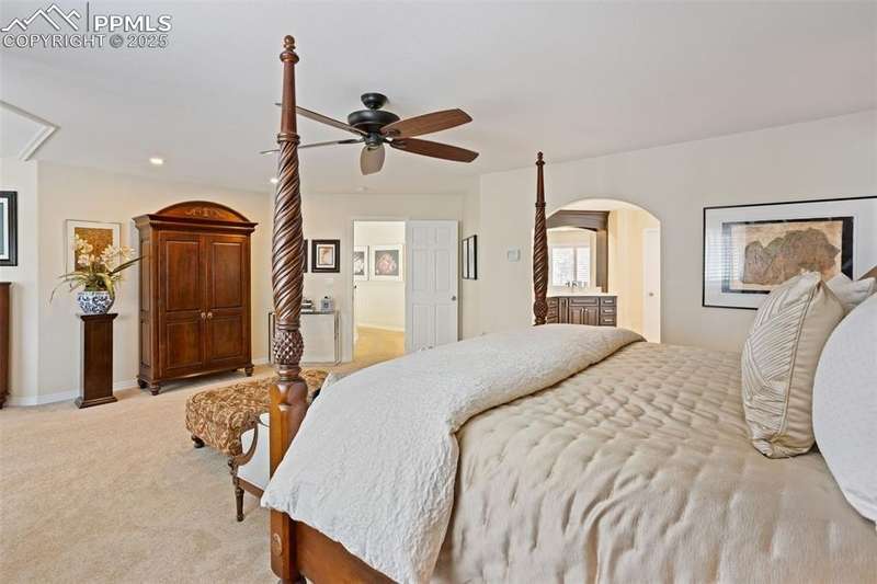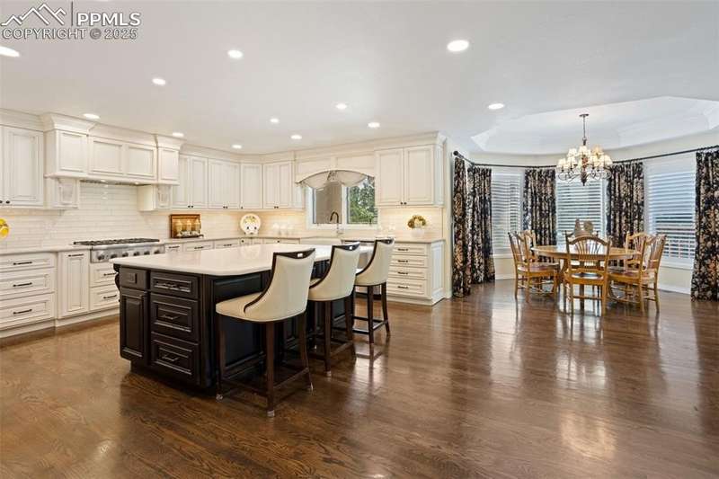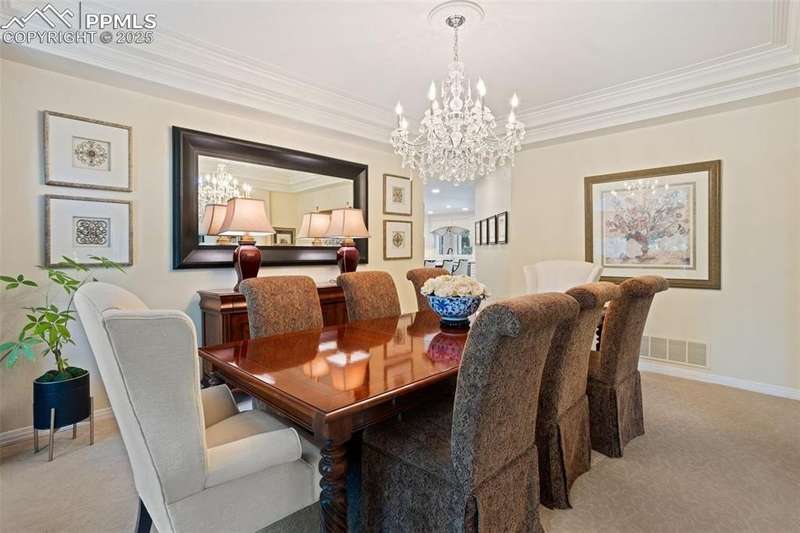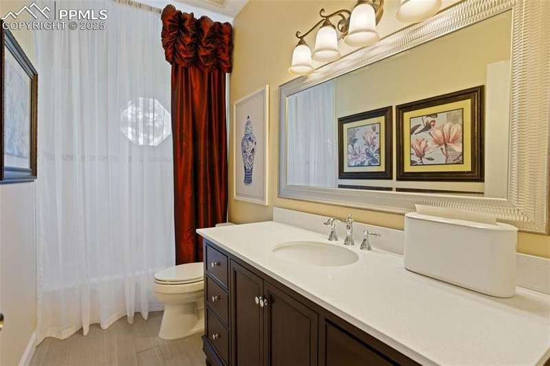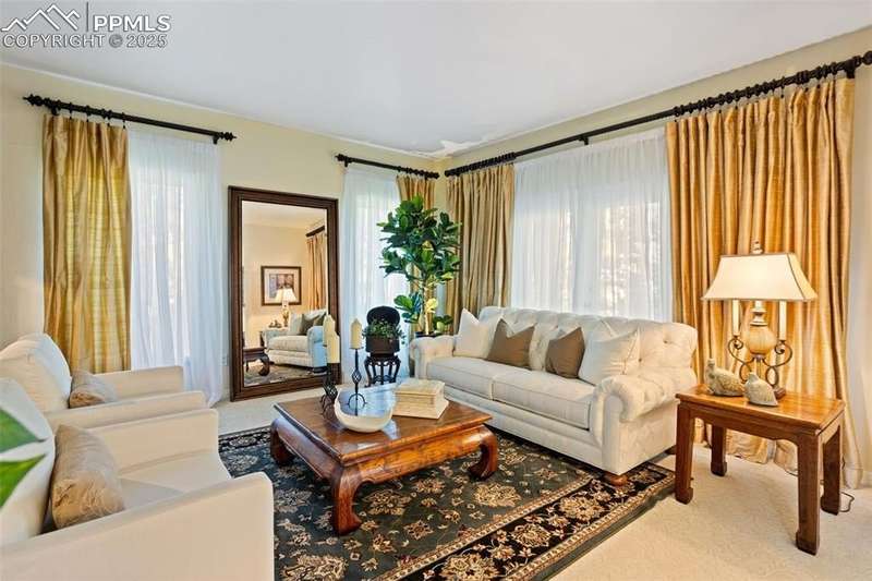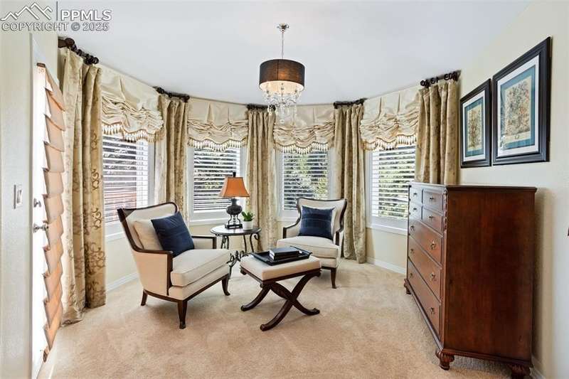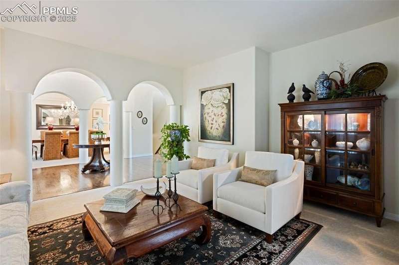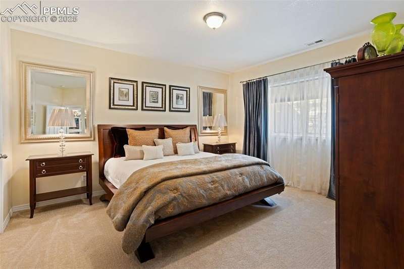 Impressive 2-Story Retreat on a private .76 Acre Lot! Welcome to this exceptional 2-story Woodmoor home, offering the perfect blend of luxury, privacy, and functionality. Nestled on a beautifully landscaped .76-acre treed lot, this residence showcases immaculate curb appeal and thoughtfully designed outdoor spaces, including two decks, a stand-alone entertaining deck, and a cozy fire pit area—all ideal for relaxing or hosting gatherings. Step inside to a majestic foyer with soaring ceilings and hardwood floors, setting the tone for the elegance throughout. The grand family room boasts floor-to-ceiling windows, flooding the space with natural light and serene views. The luxurious dining area flows seamlessly into the chef’s kitchen, which features an oversized uninterrupted island, stainless steel appliances, double ovens, a large gas range with custom hood, farm sink, quartz countertops, and decorative tile backsplash. The eat-in area walks out to a deck with a pergola, creating the perfect indoor-outdoor dining experience. A main-level office/bedroom adds flexibility, while the convenient garage entrance off the kitchen enhances everyday functionality. Upstairs, retreat to the primary suite, complete with a fully remodeled spa-inspired 5-piece bathroom and an enormous walk-in closet with custom built-ins. Three additional bedrooms and 2 full bathrooms complete the upper level. The finished basement expands your living space with a sprawling recreation room, pool table area, and access to a beautiful patio, perfect for entertaining. With central AC and countless updates, this home balances comfort and sophistication in every detail. Don’t miss this rare opportunity to own a private, beautifully appointed home designed for both grand entertaining and everyday living in Monument!