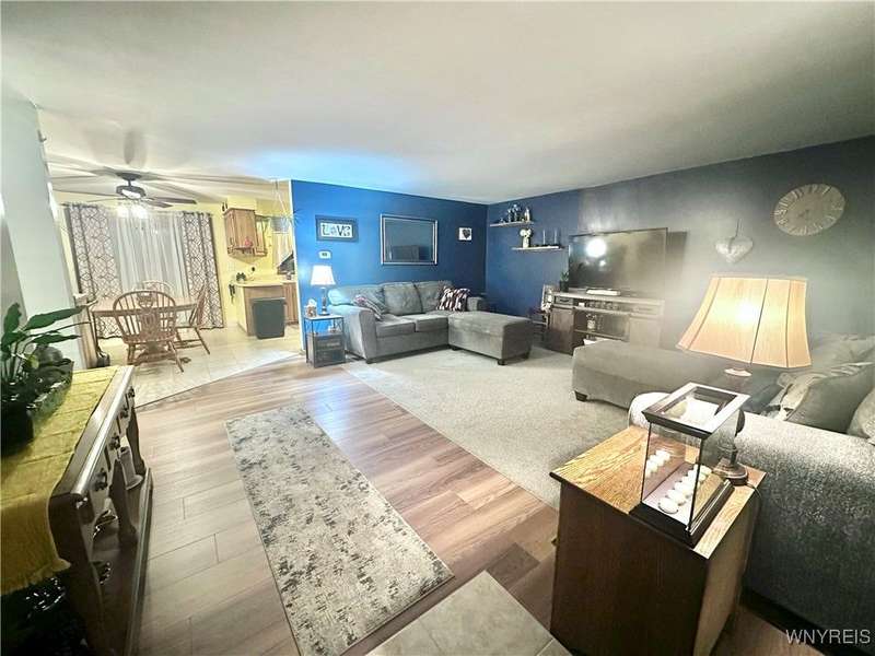 Welcome to your Cambria-Lockport escape! Situated on a quiet neighborhood road, this lovely property has the updates you are looking for: Full tear-off roof, high-efficiency furnace, central a/c, hot water tank, sump pump, coffee bar, vinyl flooring, and large deck. All done in 2018. Sprawling ranch is perfect for all mobilities. Huge living room opens to dining room / kitchen. First floor laundry. Spacious bedrooms includes 2nd full bathroom conveniently attached to master bedroom. Massive garage / man cave leads to (very) full, dry basement. Park-like setting backyard invites privacy, and great for hosting guests. Don't miss out on this opportunity! Offers are due at 1pm on Monday, November 17th.