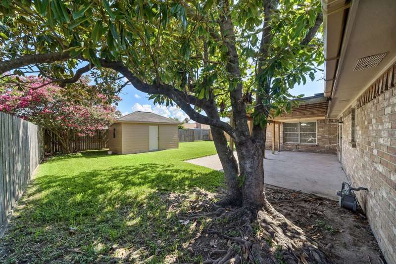 Welcome to your new home in Park Meadows of Deer Park! This 3 bed 2 bath 1 story home has been well maintained and features an open floor plan with high ceilings in the living room. Triple wide driveway with 3 car wide metal carport. Backyard has a covered patio and a shed for storage or a hobby room. New Roof March 2025! New AC condenser. Call your Realtor right away. This Deer Park Beauty is Sure to Sell Quick!