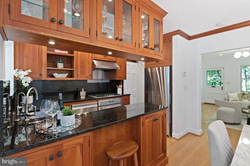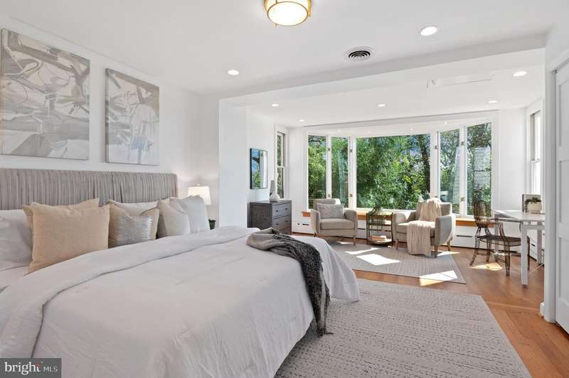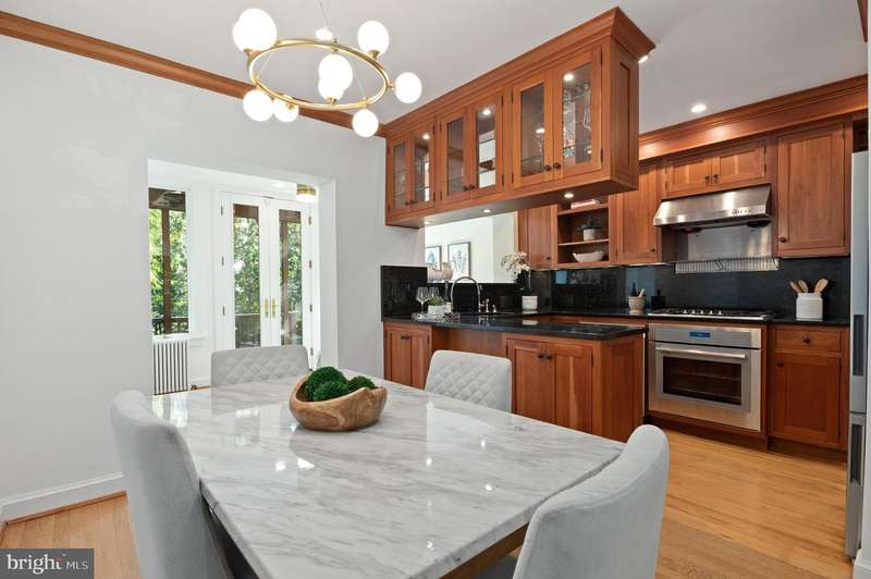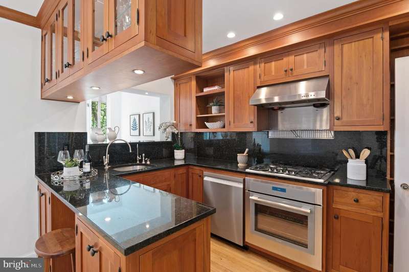 Situated on the end of a peaceful cul-de-sac, this enchanting town house conveys with a magical, rear terraced garden that leads right into Glover Archbold National Park with its secret dog park nearby. The main level offers a welcoming living room centered around a Federal-style fireplace. The open-concept kitchen boasts custom cabinetry, a floor-to-ceiling spice rack, newer Thermador and Bosch appliances, a whole-house water filtration system, and reverse osmosis drinking water. At the rear is a family room that opens to an outdoor IPE deck, perfect for extended entertaining. Stairs lead from the deck to the private alley behind the home. Below these stairs, youll find a shed equipped with a workbench, electricity, and bicycle racks.The upper level features a spacious primary bedroom with a large double closet and a large bay window offering winter views of the Washington Monument and year-round views of the Potomac River. Down the hall is a bathroom with a VELUX skylight that automatically closes when it rains. A second bedroom offers ample closet space with a large built-in and closet system. Additional storage can be found over the staircase leading to the second level.The lower level can be used as an in-law suite and/or office. It boasts a flexible space that can be converted into a third bedroom, along with a full bath, laundry room, kitchenette, and direct access to a rear stone patio. Prime location close to national park trails, Georgetown, Georgetown University, MedStar Hospital, and Duke Ellington School of Arts.