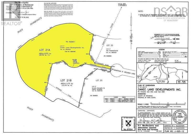 Rare Opportunity in Cape Breton NS! This stunning property offers 1,448 feet of riverfront and over 7 acres of land in a prime location. Well-connected to main roads leading to Port Hawkesbury, St. Peters, and the mainland, everything you needhospitals, schools, and shopping is just minutes away. The River Inhabitants, a favorite among local anglers, flows directly into the Atlantic Ocean, allowing for boating and kayaking right from your own land. With its unique shape, this 7-acre parcel offers south, west, and north-facing views. A dirt driveway provides access, and power lines are at the property line, with high speed internet potential. No restrictive covenants build your dream home or retreat! Plus, the asking price is below assessment value. A fantastic real estate investment buy now and watch it grow! (id:2494)