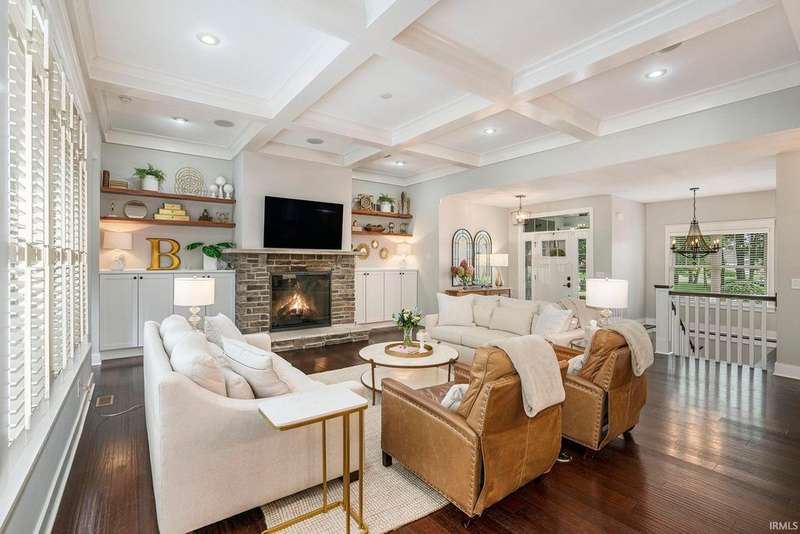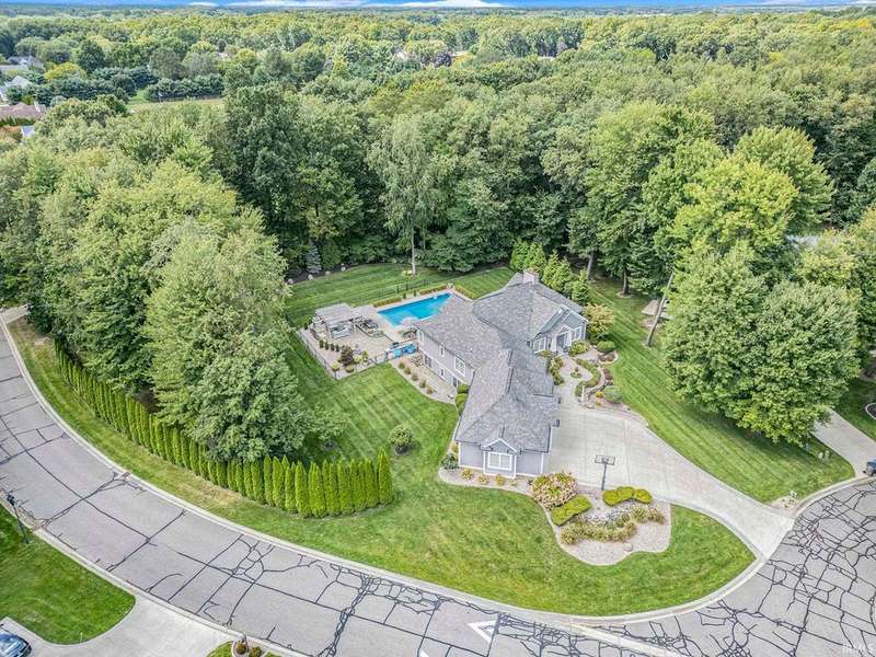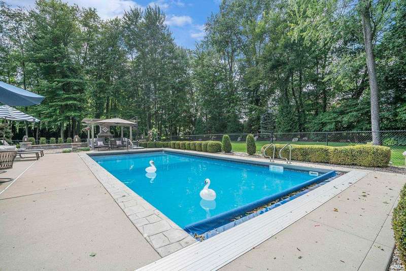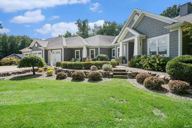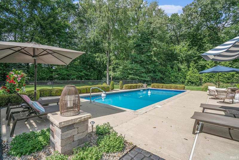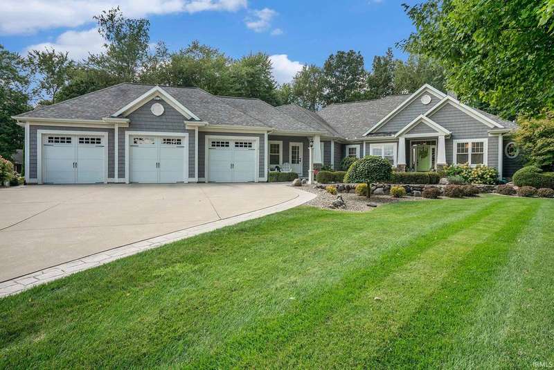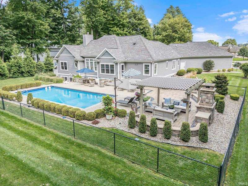 Welcome home to this stunning 5 bedroom executive ranch, located on a beautifully landscaped corner lot in Granger's Copperfield. Step inside to find an open yet cozy family room featuring coffered ceilings, a gas fireplace, and rich bamboo hardwood flooring. Gourmet kitchen includes granite countertops, double ovens, an oversized built-in refrigerator and large center island. Tasteful, high-end finishes throughout. Spacious mudroom and laundry area, accessible through a convenient side entrance, adds to the home's thoughtful layout. Primary suite offers a serene retreat-complete with an elegantly updated bathroom. Jack and Jill suites, each with generously sized closets, can be found on each level of the home. Walkout lower level expands your living space and opens to a partially fenced backyard oasis. Enjoy the inground pool, stone fireplace sitting area, and room to relax or entertain in total privacy. Heated 3 car garage with included workout equipment. All TVs included in sale. Furnace new in 2021. Schedule your private showing today!