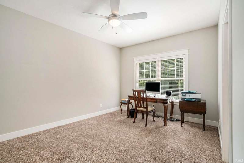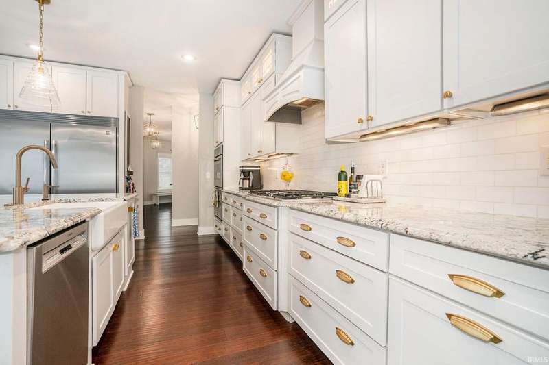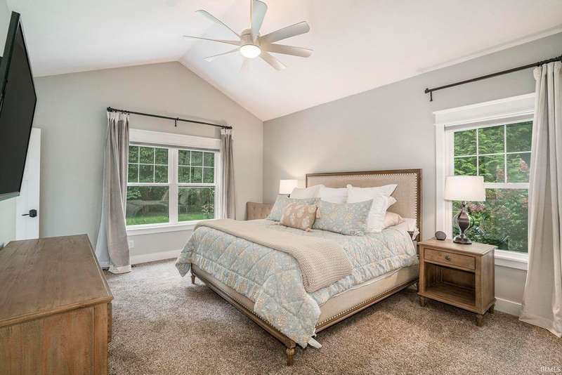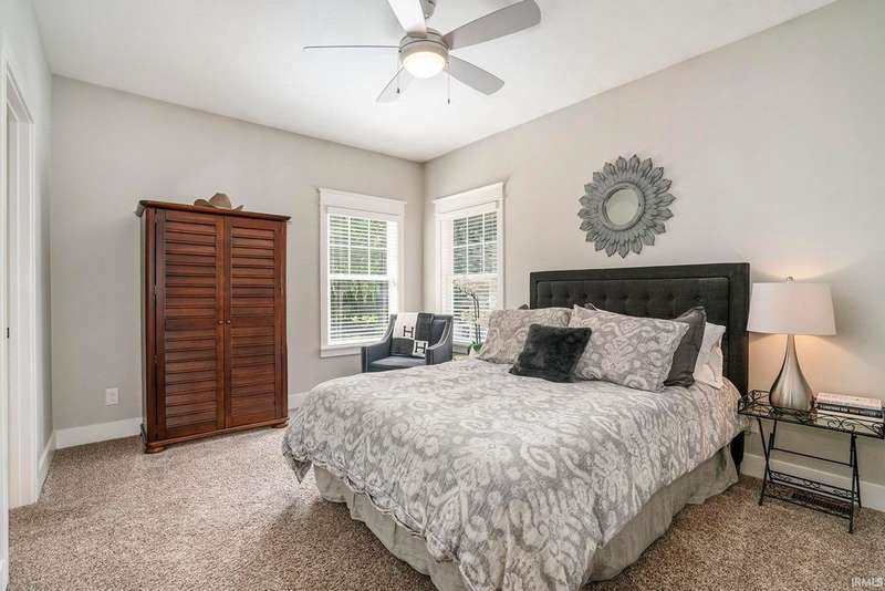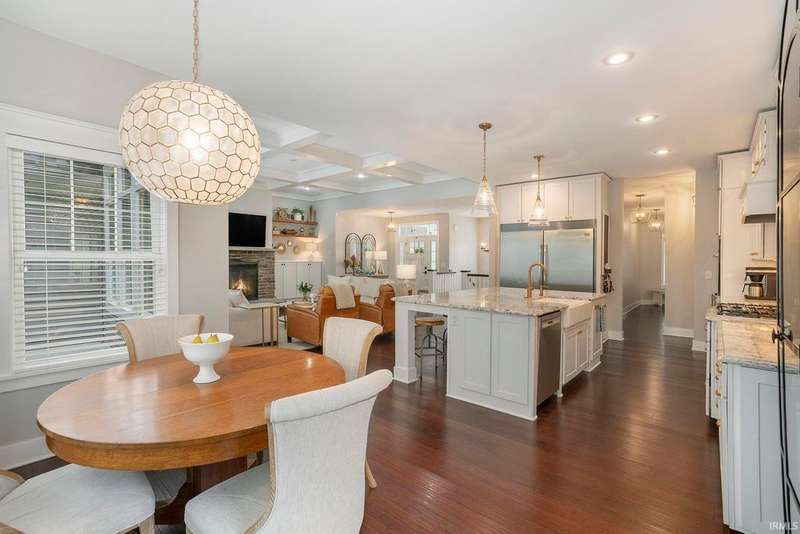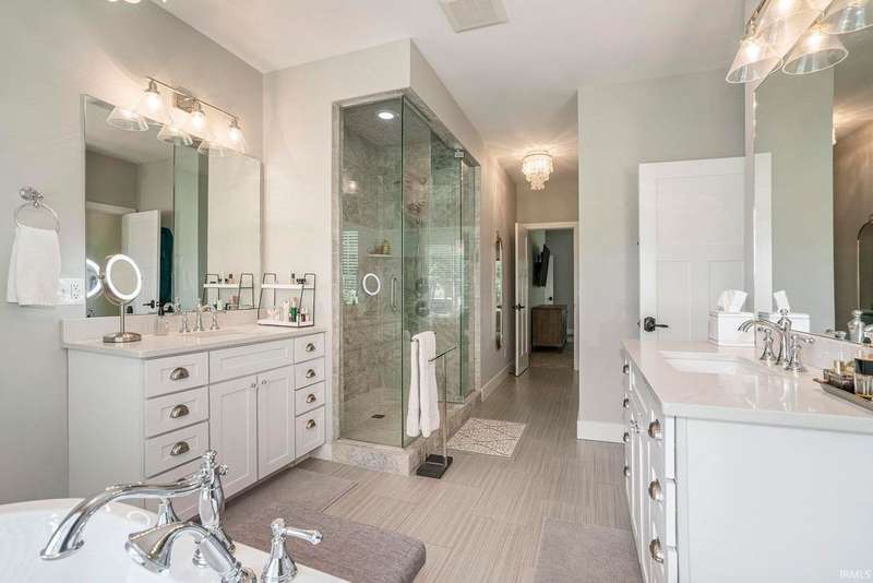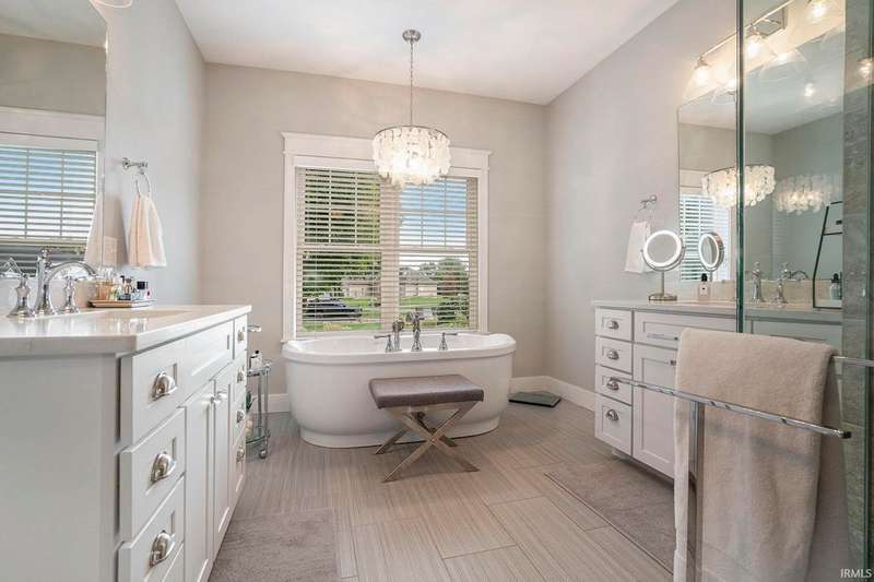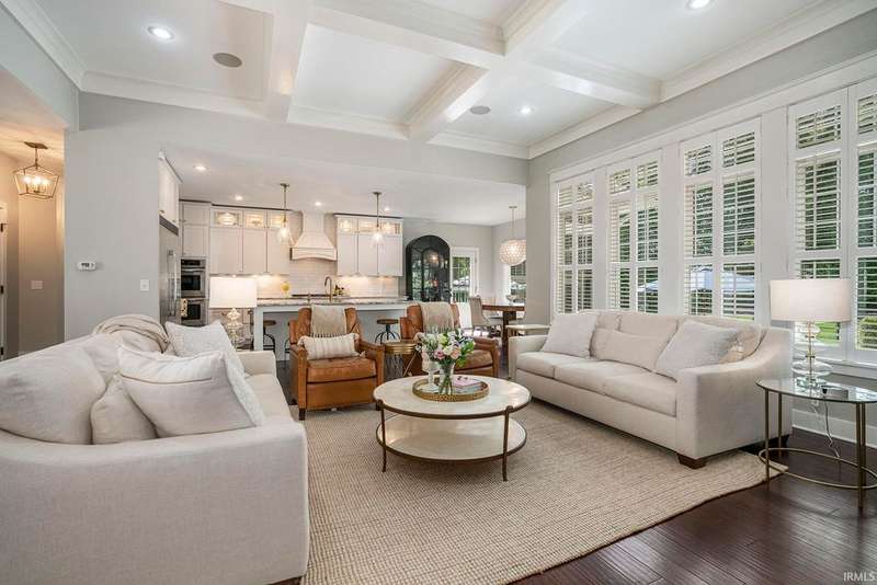 Welcome home to this stunning 5 bedroom executive ranch, located on a beautifully landscaped corner lot in Granger's Copperfield. Step inside to find an open yet cozy family room featuring coffered ceilings, a gas fireplace, and rich bamboo hardwood flooring. Gourmet kitchen includes granite countertops, double ovens, an oversized built-in refrigerator and large center island. Tasteful, high-end finishes throughout. Spacious mudroom and laundry area, accessible through a convenient side entrance, adds to the home's thoughtful layout. Primary suite offers a serene retreat-complete with an elegantly updated bathroom. Jack and Jill suites, each with generously sized closets, can be found on each level of the home. Walkout lower level expands your living space and opens to a partially fenced backyard oasis. Enjoy the inground pool, stone fireplace sitting area, and room to relax or entertain in total privacy. Heated 3 car garage with included workout equipment. All TVs included in sale. Furnace new in 2021. Schedule your private showing today!