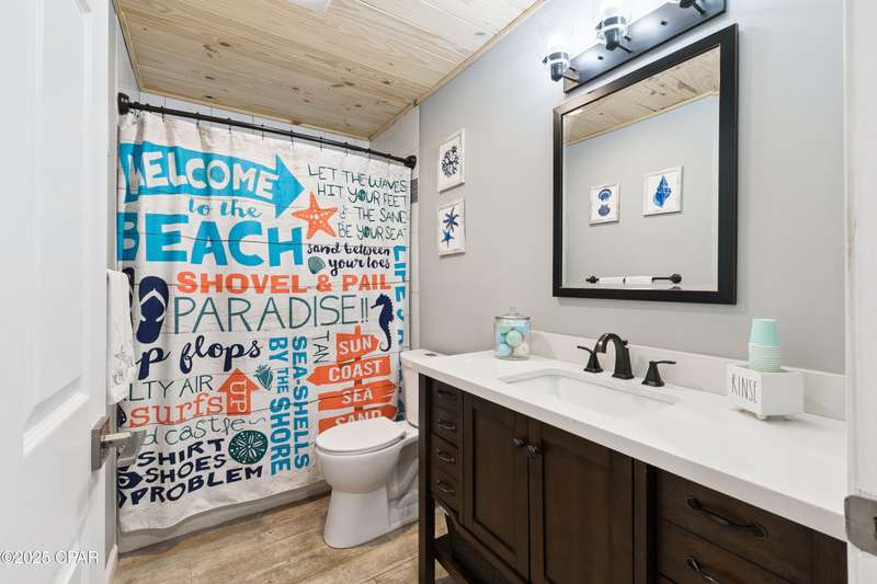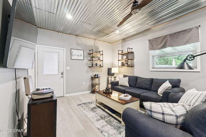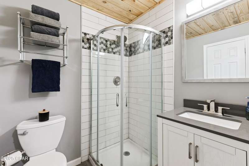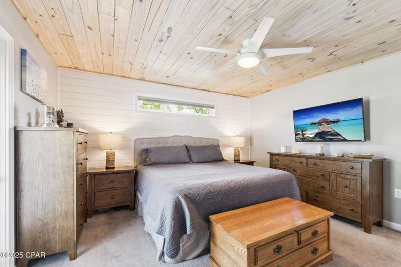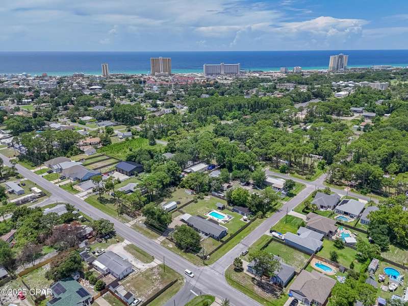 Looking for an updated, single story home with impact windows on over 1/2 acre, close to the beach and move-in or rental ready? Keep reading! No Homeowner Association (HOA), a 20,000 gallon saltwater pool with Glacier cooler to keep you swimming all Summer, tankless hot water heater for those long hot showers, and plenty of room to park your boat or RV, this home is a Panama City Beach oasis! Less rules, more flexibility (no HOA)! There is even enough space for a pickleball court! Included in the property is a 1BR/1BA In-law suite with full kitchen attached to the home with its own entrance, and a massive 800 sqft detached storage building. The backyard is both your private sanctuary and an entertainer's delight with its own grilling pavilion, plenty of room to lounge by the pool, or set up cornhole or a volleyball net for a BBQ with family and friends. A 2nd power pole also services the property and is ready to install your Tesla or RV charging station, or build your own invention, dream, or addition!