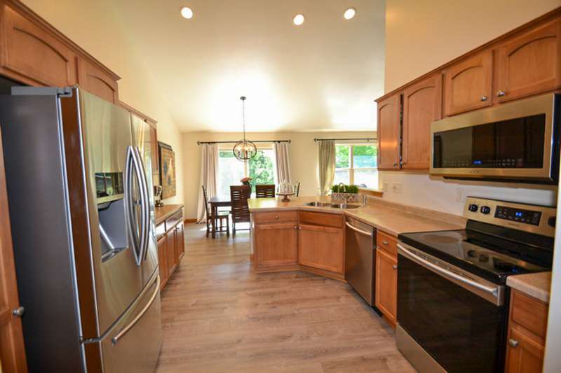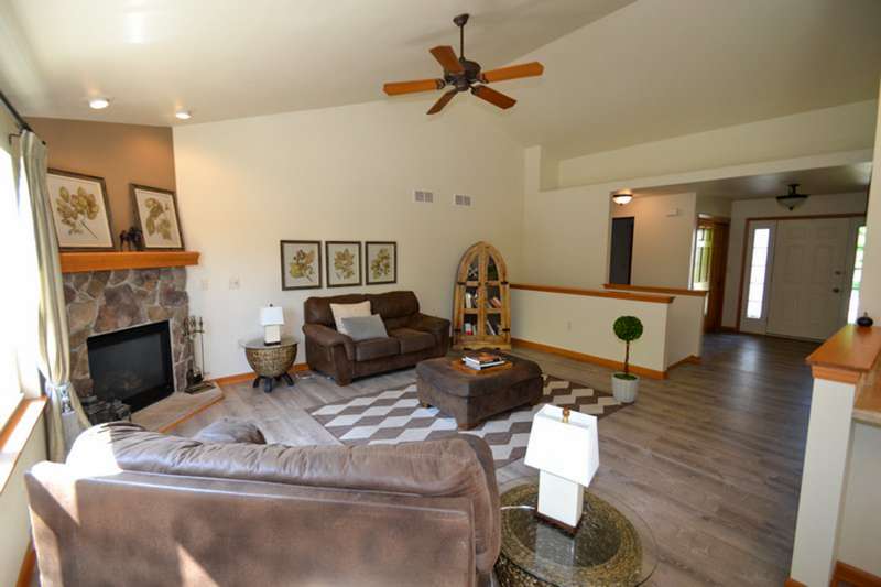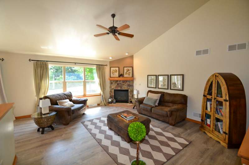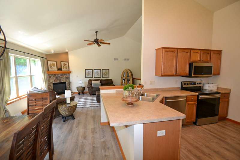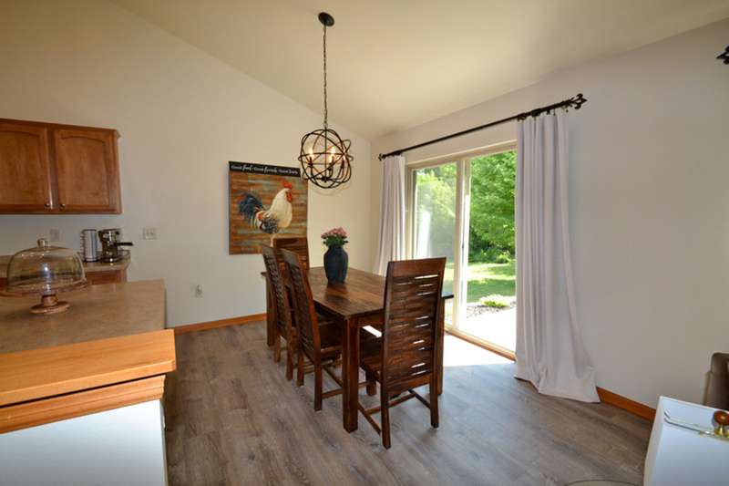 This well-kept ranch home features an open layout with 3 bedrooms and 2 full bathrooms. Located in Thurows Golden View Estates, it has a new roof installed in 2023 and is conveniently within walking distance to Fowler Lake and downtown Oconomowoc. The spacious kitchen flows into the great room, which boasts a vaulted ceiling and a gas fireplace, creating a welcoming atmosphere. You will find laundry facilities on the main level for your convenience. The basement offers significant potential with full-sized windows, allowing for future customization. Enjoy the outdoors on the large patio that overlooks pleasant wooded views. This property is a fantastic opportunity for anyone seeking a comfortable and well-located home.