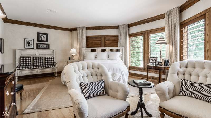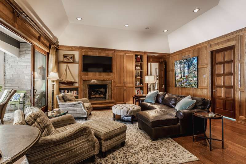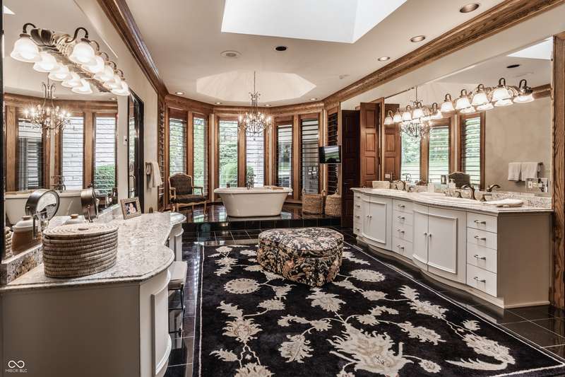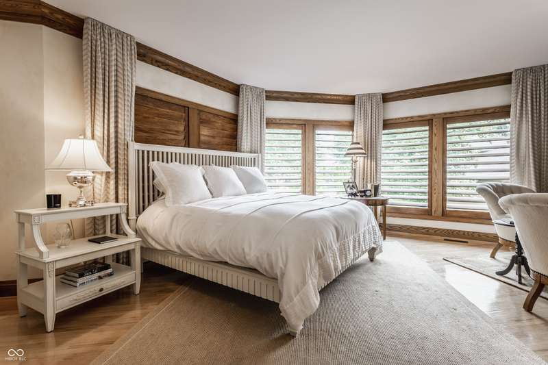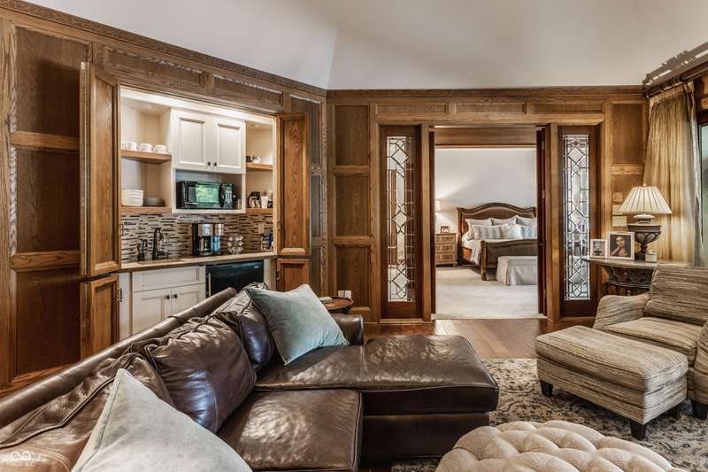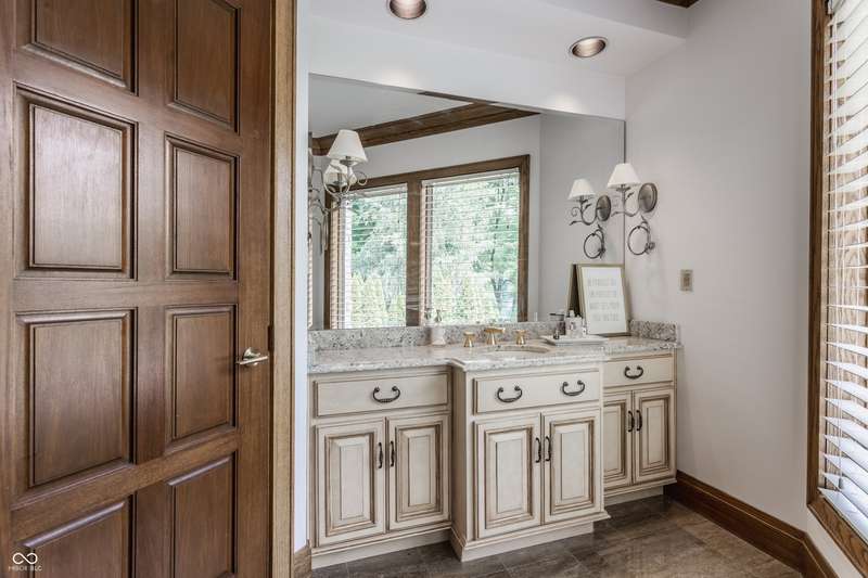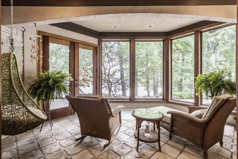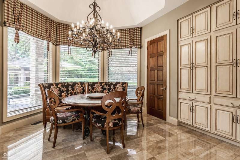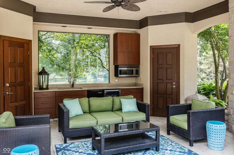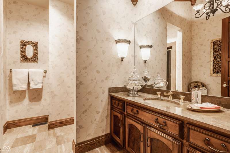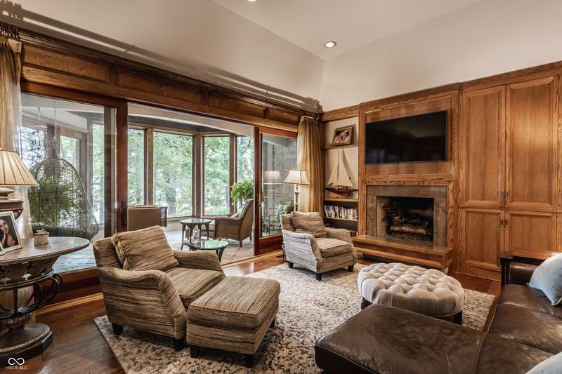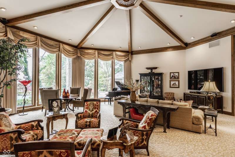 Exclusivity at its finest, this gated estate expands over 5.5 acres & is perfectly situated to capture breathtaking, panoramic views w/1250 ft of water frontage on Eagle Creek Reservoir. The lush oasis creates the feeling of a serene, private sanctuary featuring a koi pond that spans the back of the home, Gunite swimming pool & spa w/cabana & tennis court w/cabana. A spacious great room welcomes guests w/expansive bay windows that brighten the room, which also features a vaulted ceiling w/exposed wooden beams, built-in aquarium, fireplace & adjoining bar area with access to the backyard retreat. Cozy den embellished with wood-paneled walls, built-ins & marble fireplace. Gourmet kitchen boats upscale appliances and sunwashed breakfast area.