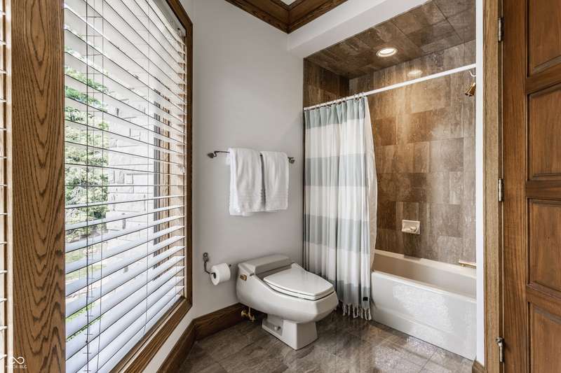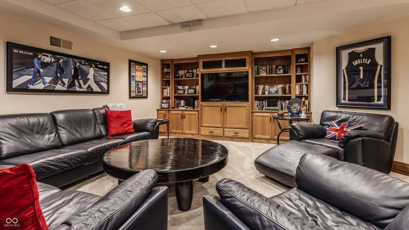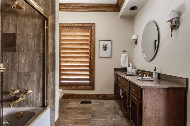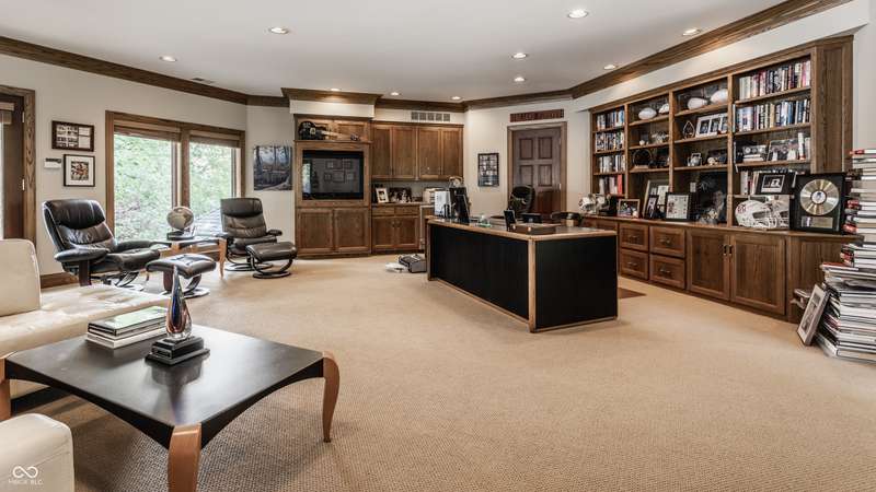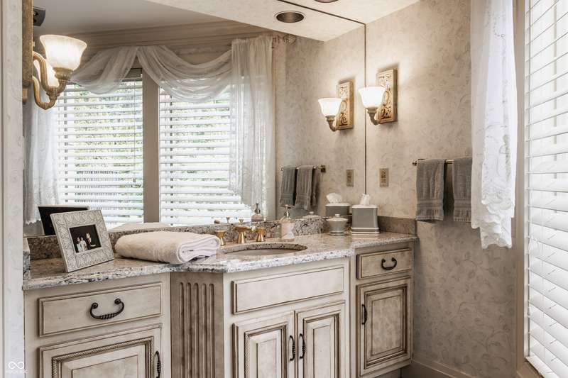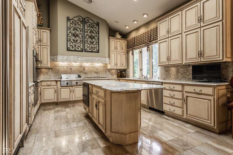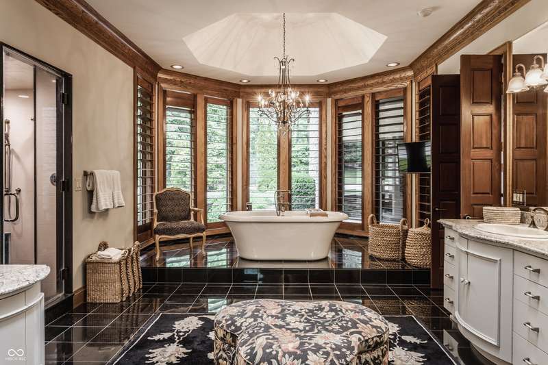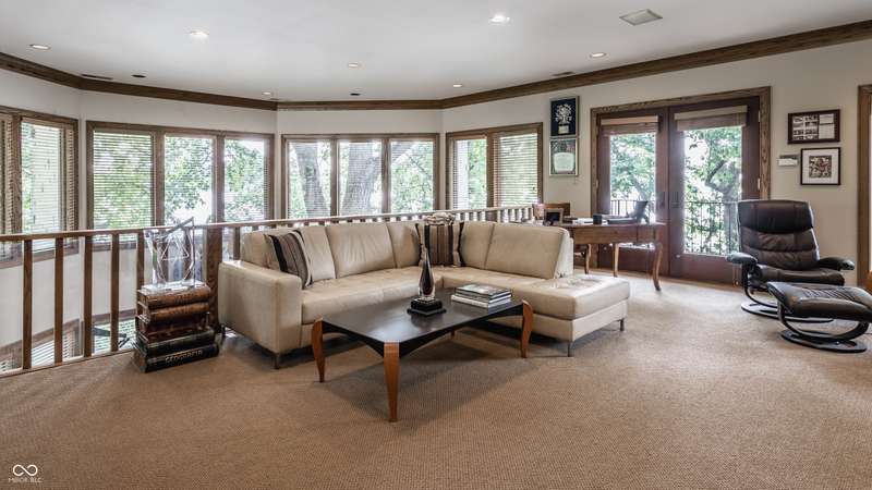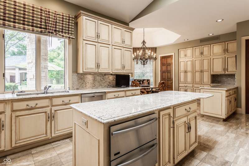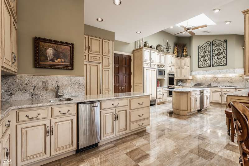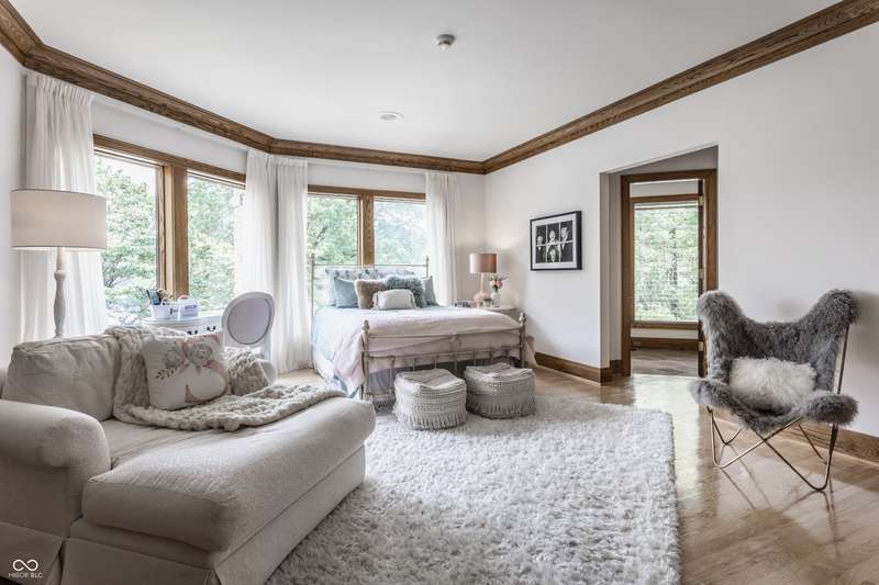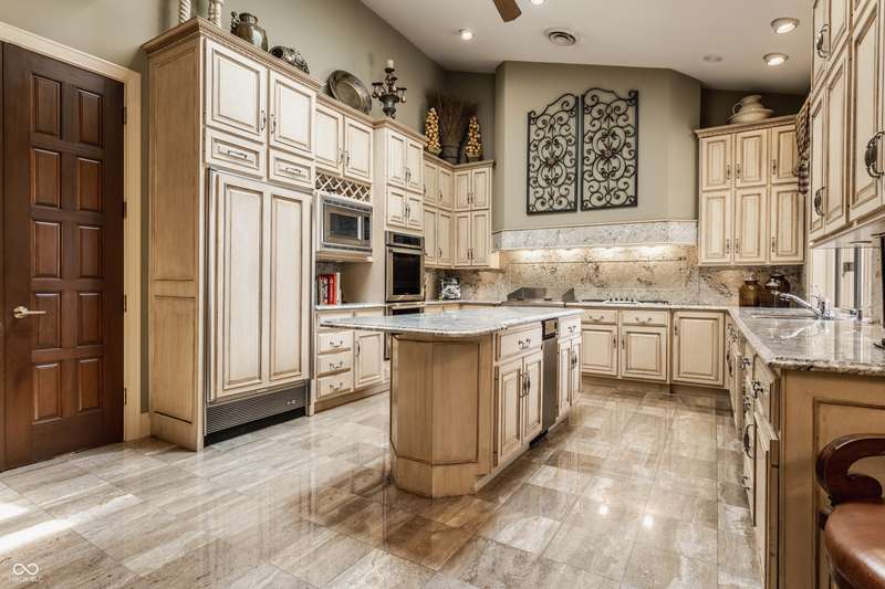 Exclusivity at its finest, this gated estate expands over 5.5 acres & is perfectly situated to capture breathtaking, panoramic views w/1250 ft of water frontage on Eagle Creek Reservoir. The lush oasis creates the feeling of a serene, private sanctuary featuring a koi pond that spans the back of the home, Gunite swimming pool & spa w/cabana & tennis court w/cabana. A spacious great room welcomes guests w/expansive bay windows that brighten the room, which also features a vaulted ceiling w/exposed wooden beams, built-in aquarium, fireplace & adjoining bar area with access to the backyard retreat. Cozy den embellished with wood-paneled walls, built-ins & marble fireplace. Gourmet kitchen boats upscale appliances and sunwashed breakfast area.