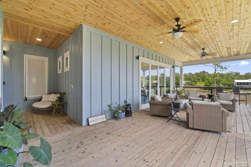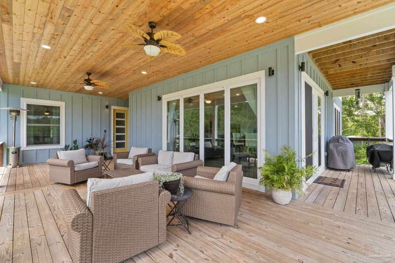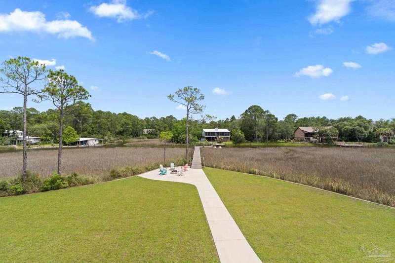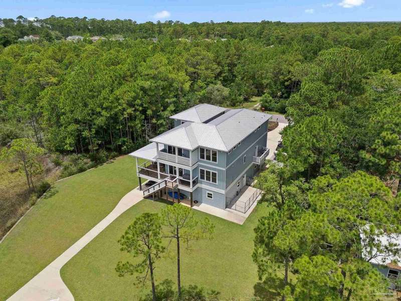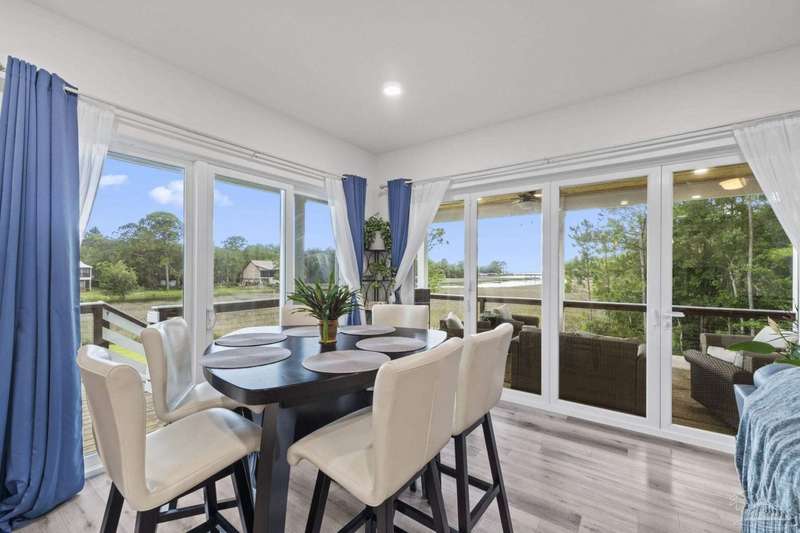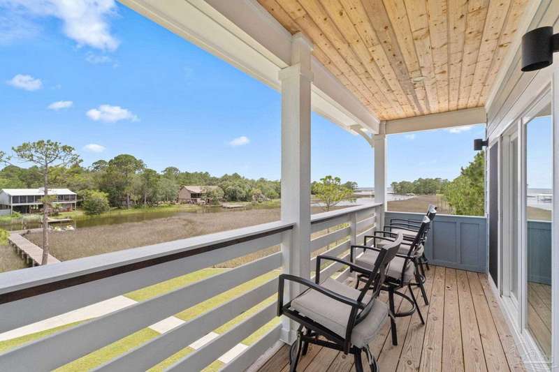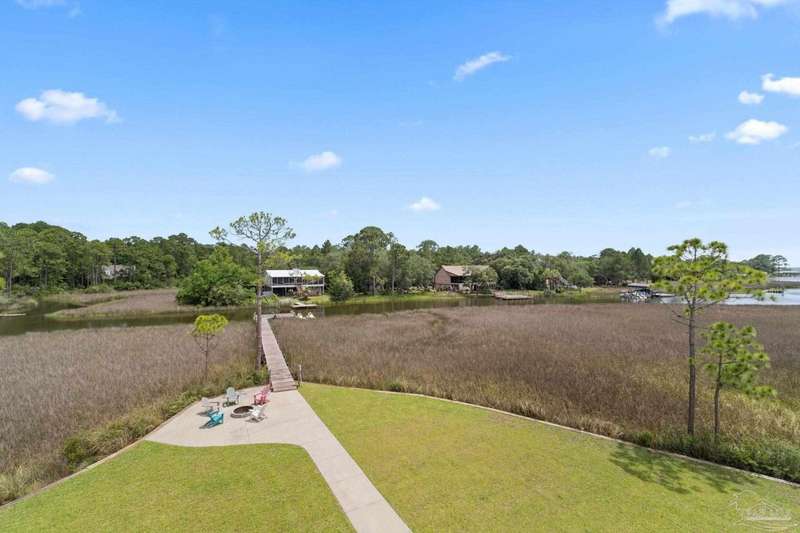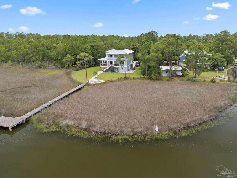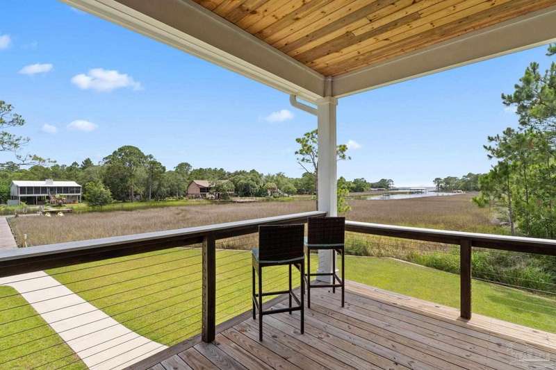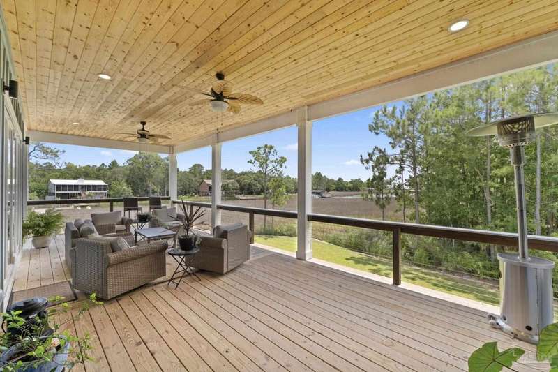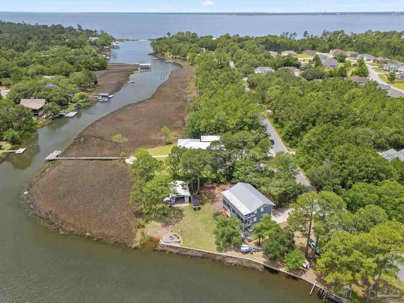 Experience effortless waterfront living in this custom, 2023-built residence set on nearly an acre along tranquil Trout Bayou, with protected boat access to Escambia Bay and a community launch just steps away. The main home offers 2 bedrooms, 2.5 baths, and airy, view-focused living spaces: a chef's kitchen with an oversized island opens to the second-floor living area and a full-width covered porch, while the third-floor entertaining level-framed by sweeping bayou vistas-features a wet bar and a dedicated office that can easily be converted to a third bedroom with the simple addition of sheetrock (wiring and lighting already in place). Below, you'll find a large garage plus covered storage for all your boating and outdoor gear. Built for efficiency and durability, the home includes spray-foam attic insulation with dehumidifiers, impact-rated windows and doors, steel-rod structural framing, and a metal roof; fresh sod blankets the expansive yard. A breezeway connects the guest cottage, which offers 2 additional bedrooms, 1.5 baths, and a private washer/dryer-ideal for extended family or visitors. Enjoy your own dock on protected water, plus the convenience of being just 20 minutes to Downtown Pensacola and 25 minutes to Gulf-front beaches. This is a rare, turnkey opportunity for peaceful Gulf Coast living with every modern comfort. Buyer to verify all measurements and information.