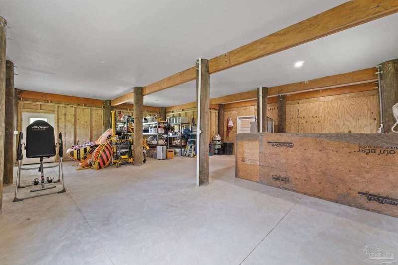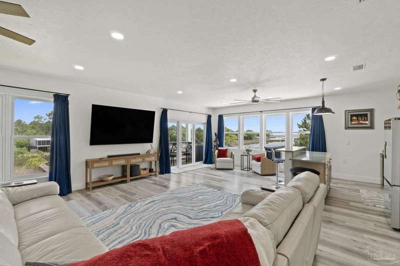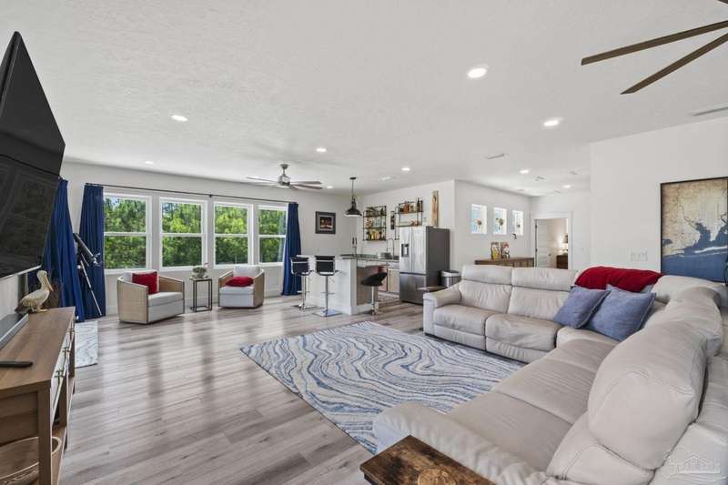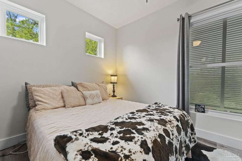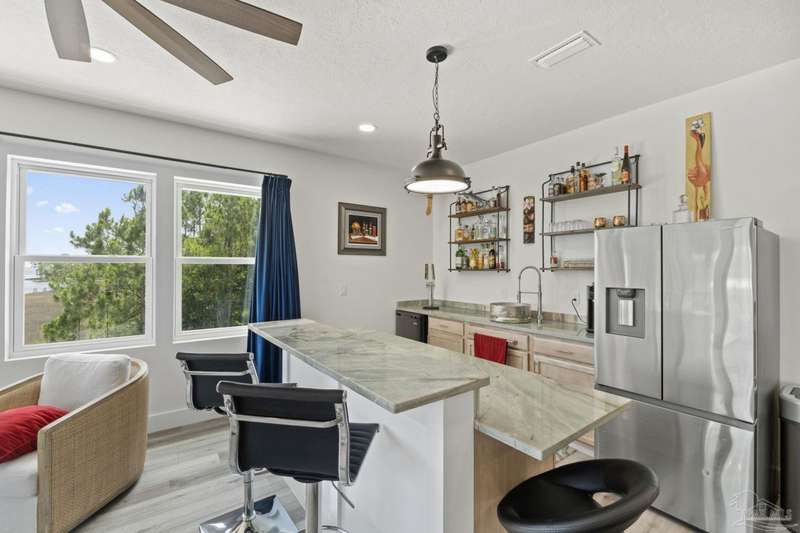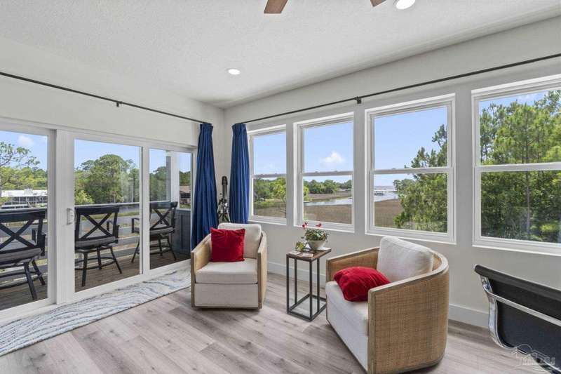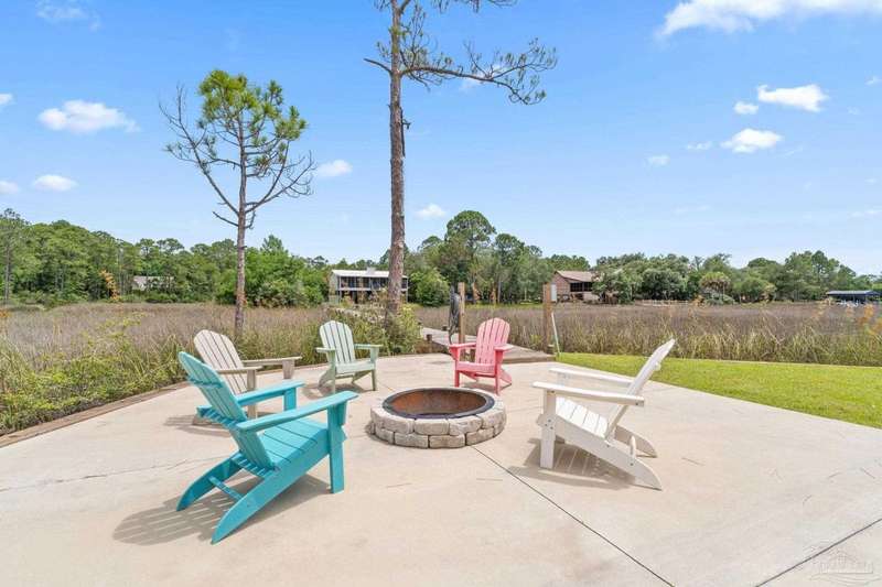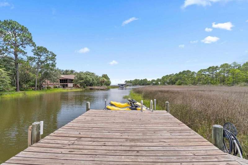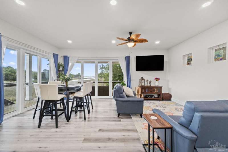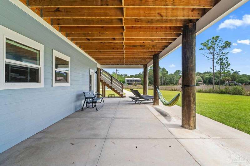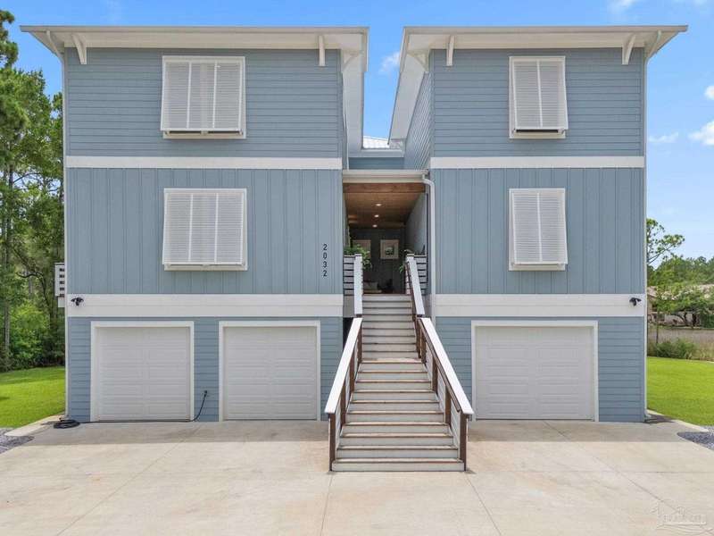 Experience effortless waterfront living in this custom, 2023-built residence set on nearly an acre along tranquil Trout Bayou, with protected boat access to Escambia Bay and a community launch just steps away. The main home offers 2 bedrooms, 2.5 baths, and airy, view-focused living spaces: a chef's kitchen with an oversized island opens to the second-floor living area and a full-width covered porch, while the third-floor entertaining level-framed by sweeping bayou vistas-features a wet bar and a dedicated office that can easily be converted to a third bedroom with the simple addition of sheetrock (wiring and lighting already in place). Below, you'll find a large garage plus covered storage for all your boating and outdoor gear. Built for efficiency and durability, the home includes spray-foam attic insulation with dehumidifiers, impact-rated windows and doors, steel-rod structural framing, and a metal roof; fresh sod blankets the expansive yard. A breezeway connects the guest cottage, which offers 2 additional bedrooms, 1.5 baths, and a private washer/dryer-ideal for extended family or visitors. Enjoy your own dock on protected water, plus the convenience of being just 20 minutes to Downtown Pensacola and 25 minutes to Gulf-front beaches. This is a rare, turnkey opportunity for peaceful Gulf Coast living with every modern comfort. Buyer to verify all measurements and information.