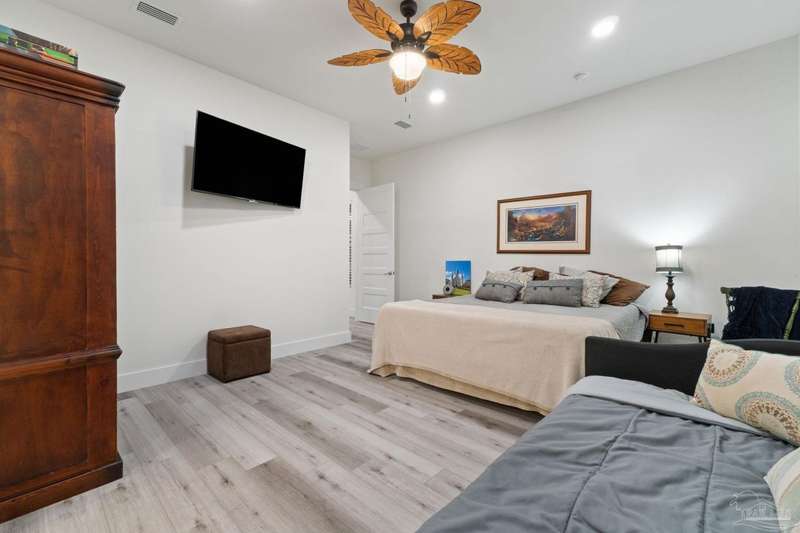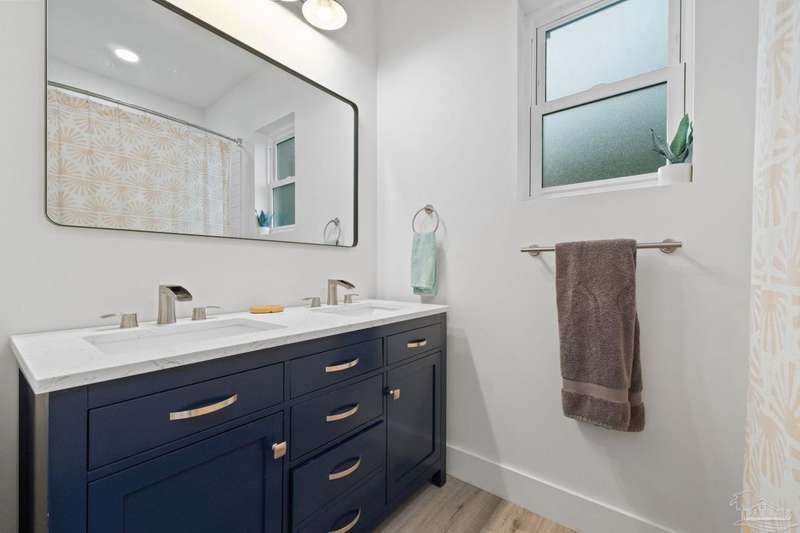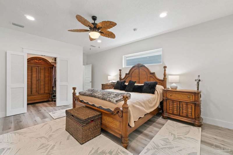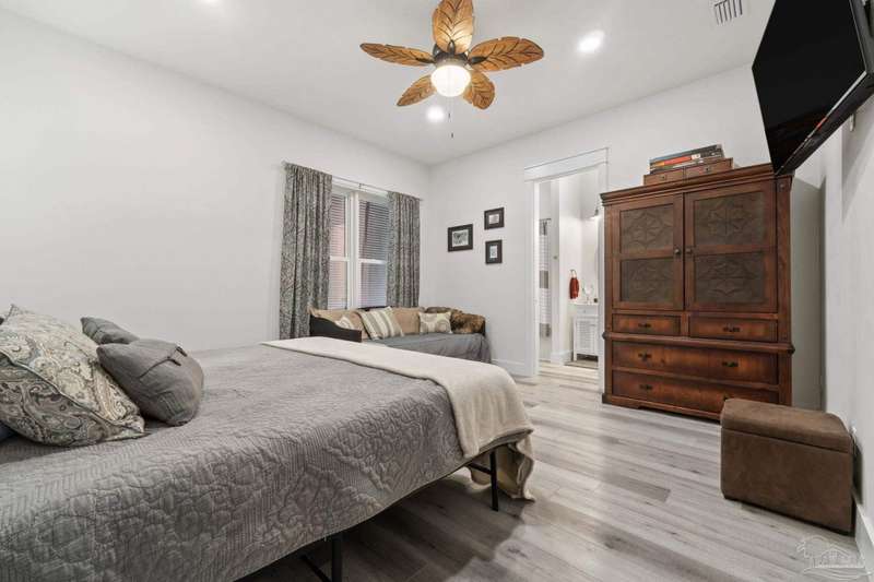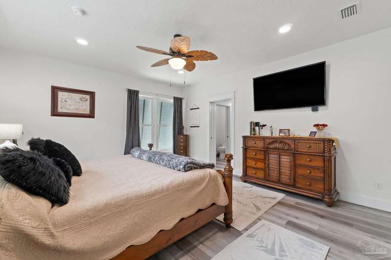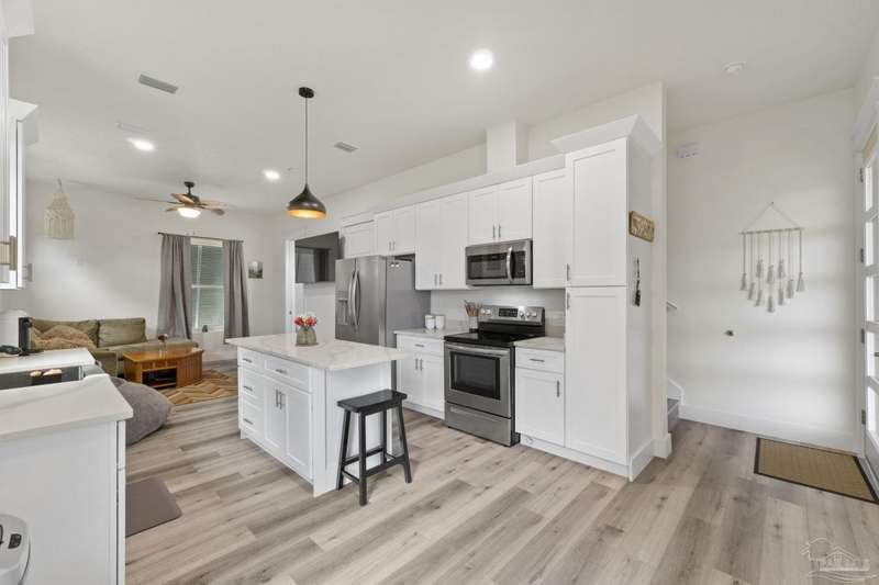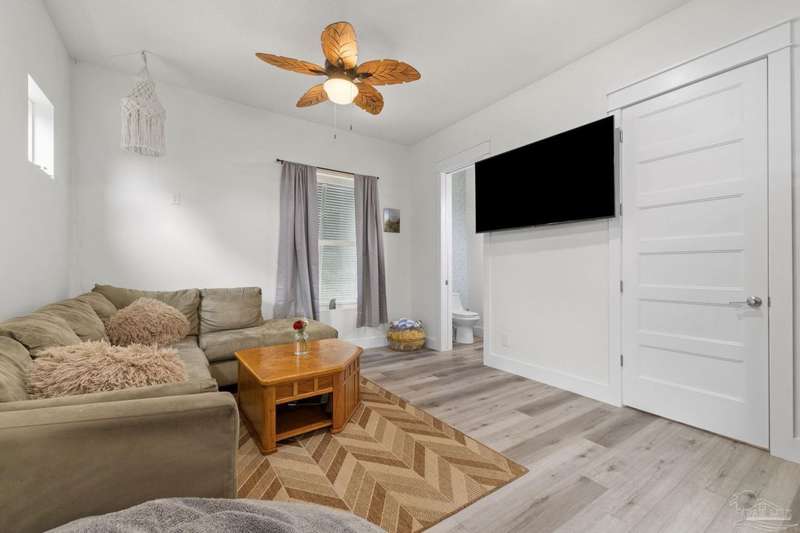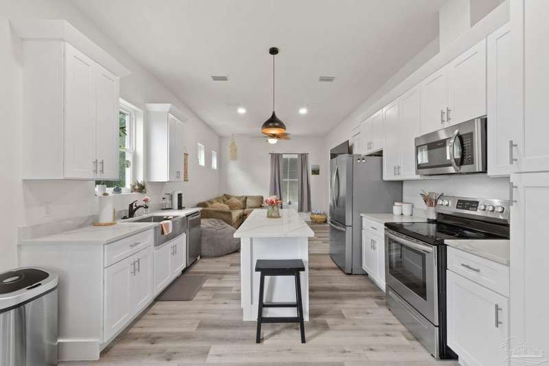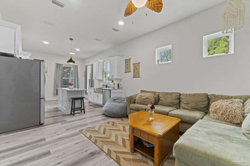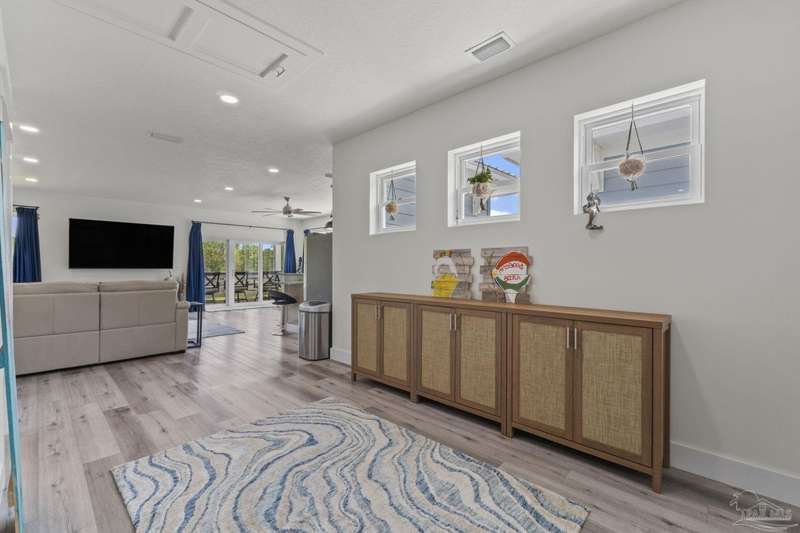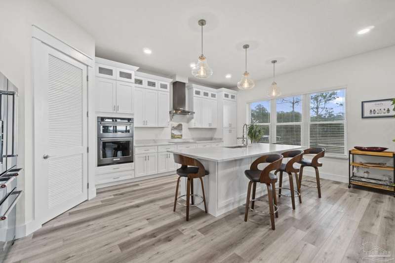 Experience effortless waterfront living in this custom, 2023-built residence set on nearly an acre along tranquil Trout Bayou, with protected boat access to Escambia Bay and a community launch just steps away. The main home offers 2 bedrooms, 2.5 baths, and airy, view-focused living spaces: a chef's kitchen with an oversized island opens to the second-floor living area and a full-width covered porch, while the third-floor entertaining level-framed by sweeping bayou vistas-features a wet bar and a dedicated office that can easily be converted to a third bedroom with the simple addition of sheetrock (wiring and lighting already in place). Below, you'll find a large garage plus covered storage for all your boating and outdoor gear. Built for efficiency and durability, the home includes spray-foam attic insulation with dehumidifiers, impact-rated windows and doors, steel-rod structural framing, and a metal roof; fresh sod blankets the expansive yard. A breezeway connects the guest cottage, which offers 2 additional bedrooms, 1.5 baths, and a private washer/dryer-ideal for extended family or visitors. Enjoy your own dock on protected water, plus the convenience of being just 20 minutes to Downtown Pensacola and 25 minutes to Gulf-front beaches. This is a rare, turnkey opportunity for peaceful Gulf Coast living with every modern comfort. Buyer to verify all measurements and information.
