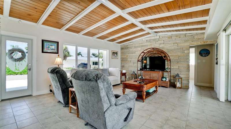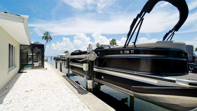Under contract-accepting backup offers. Enjoy all that living on the water includes from this location. This canal pool home with its 2 remote controlled boat lifts, its southern exposure, is where you could love to call home. Quality is apparent from the first time you gain entry to this charming Florida lifestyle residence on Longboat Key. The character of the original home with its vaulted wood beamed ceilings and stone fireplace have been complemented by modern touches of Shellcrete concrete walkways, pool deck and driveway. A nice blend of functionality, original character and modern upgrades make this home an attractive waterfront living option. Easy access from the canal to the Sarasota Bay and downtown Sarasota. A great opportunity for Island living.