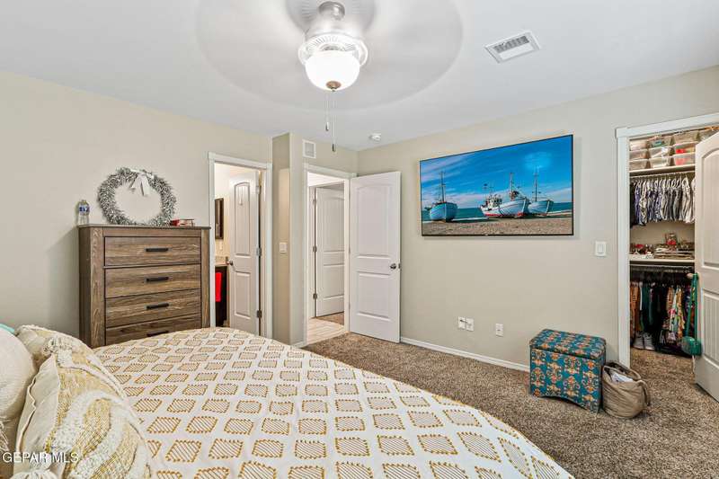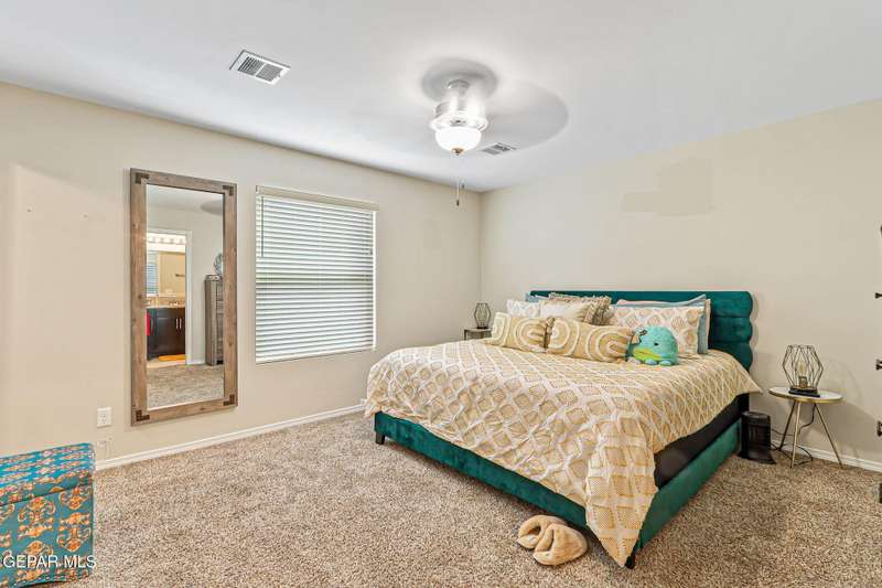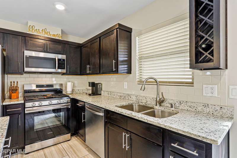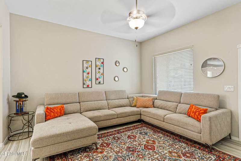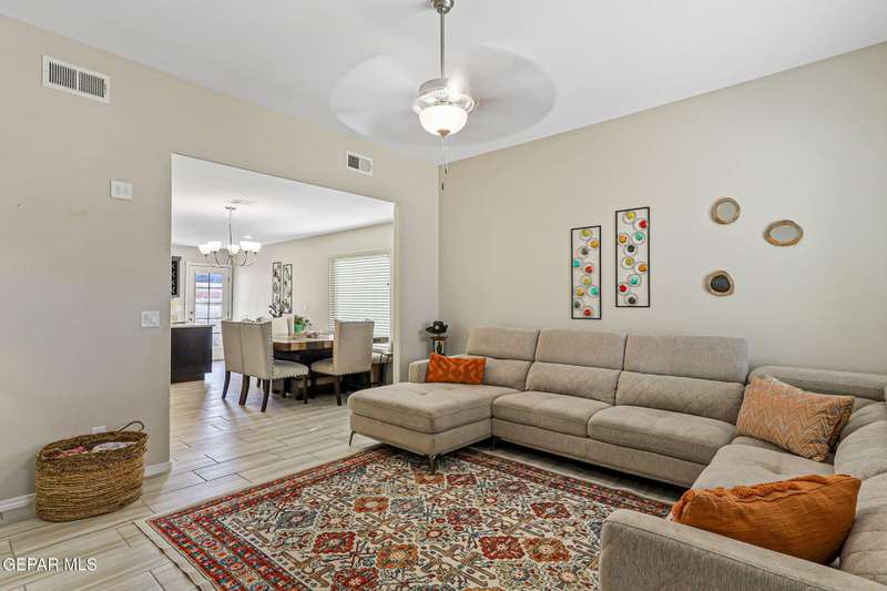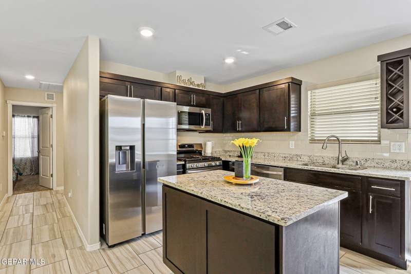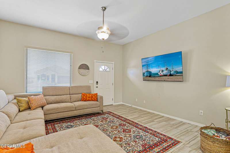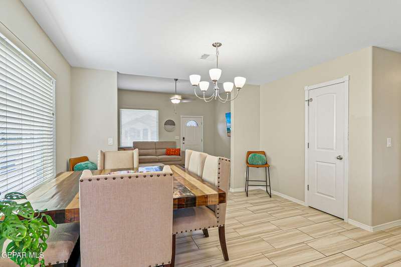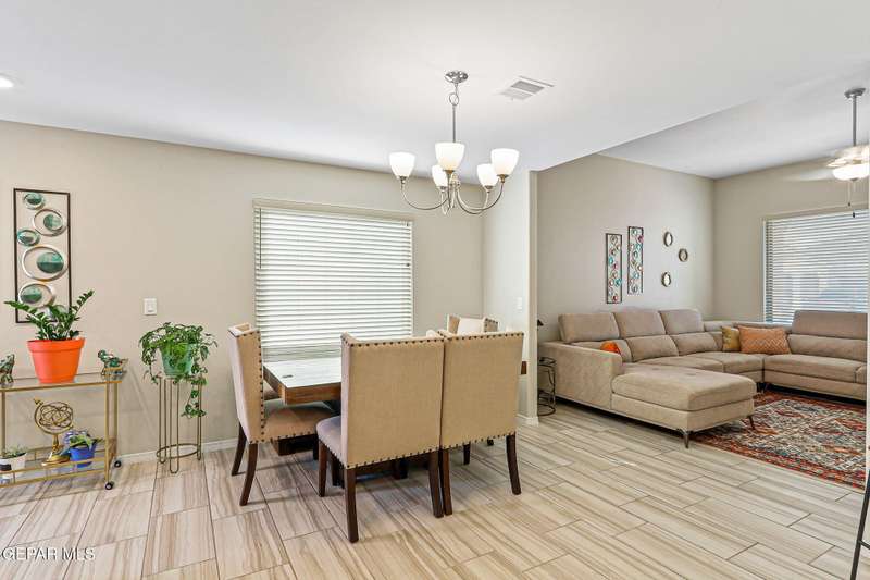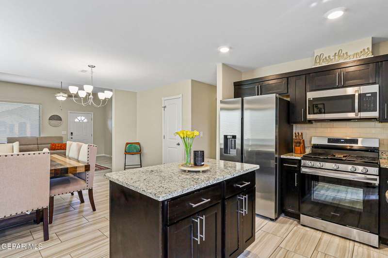 Welcome to this modern single-level home, thoughtfully designed with comfort, style, and functionality in mind. The inviting open floor plan creates a seamless flow between the spacious living room, dining area, and kitchen, making it perfect for both entertaining guests and enjoying everyday living. The sleek kitchen features ample counter space, and an island that doubles as a gathering spot. Large windows fill the home with natural light.. The primary suite offers a peaceful retreat with a well-appointed ensuite bath, while additional bedrooms provide flexibility for family, guests, or a home office. Step outside to a beautifully designed, low maintenance backyard with artificial turf, perfect for relaxing or hosting gatherings. Ideally situated in a very convenient location with access to top rated schools, shopping, dining, and parks, plus just a short drive to Fort Bliss, this move-in ready home combines modern luxury with everyday practicality.