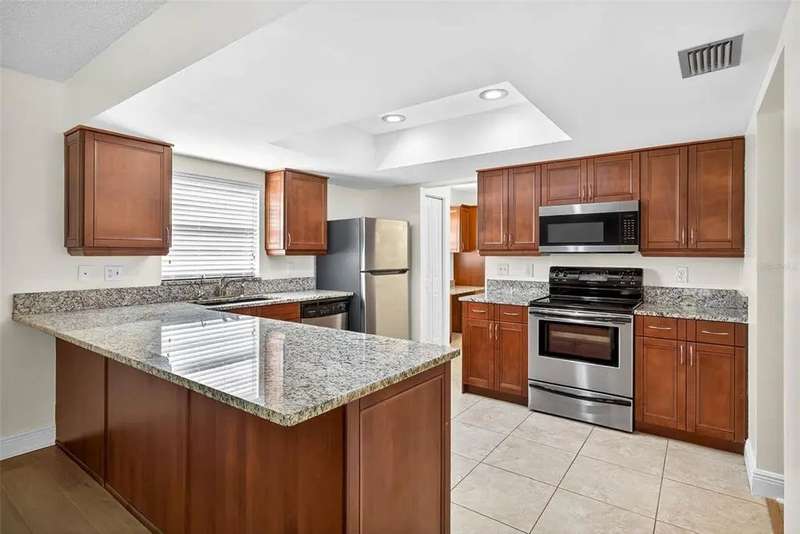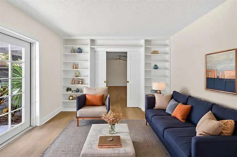 One or more photo(s) has been virtually staged. Welcome to this beautifully updated 3-bedroom, 2-bath home, nestled on a peaceful, oak tree-lined street in the heart of Temple Terrace. This move-in-ready home features numerous recent updates, including a NEW roof (2025), NEW attic insulation (2025), NEW A/C (2022), NEW water heater (2022), and fresh interior paint (2025) in light, neutral tones, providing comfort and peace of mind for years to come. Step through the elegant double front doors with beveled glass into a bright and welcoming foyer filled with natural light. Throughout the home, new high-performance HPC vinyl plank flooring offers the warmth and texture of real wood while maintaining durability and style. The formal living room features floor-to-ceiling shelving and French doors that open to the sparkling in-ground pool and fully fenced backyard, perfect for outdoor enjoyment. The spacious family room also offers built-in shelving and cabinetry, along with another set of French doors leading to the screened patio, creating an effortless flow between indoor and outdoor living areas. The kitchen is both functional and stylish, showcasing granite countertops, stainless steel appliances, shaker-style cabinetry, a closet pantry, and a separate desk area, ideal for a small home office, coffee bar, or wine station. Both bathrooms have been completely remodeled from top to bottom with new drywall and insulation, modern fixtures, elegant vanities, subway tile, and beautiful lighting. Located just a few blocks from the Temple Terrace Golf & Country Club and the Temple Terrace Recreation Center, residents can enjoy an abundance of amenities, including an Olympic-sized pool, tennis and racquetball courts, a fitness center, and year-round activities for all ages. You’ll also appreciate the nearby parks, trails, and the scenic Hillsborough River with convenient boat ramp access. With no HOA, no CDD, and no flood insurance required, this home offers exceptional value and peace of mind. Conveniently situated near USF, Moffitt Cancer Center, Busch Gardens, and major highways (I-75 & I-275), this is an incredible opportunity to own a beautifully updated pool home in one of Tampa Bay’s most charming cities—all for $439,000.