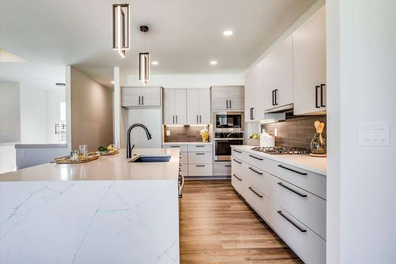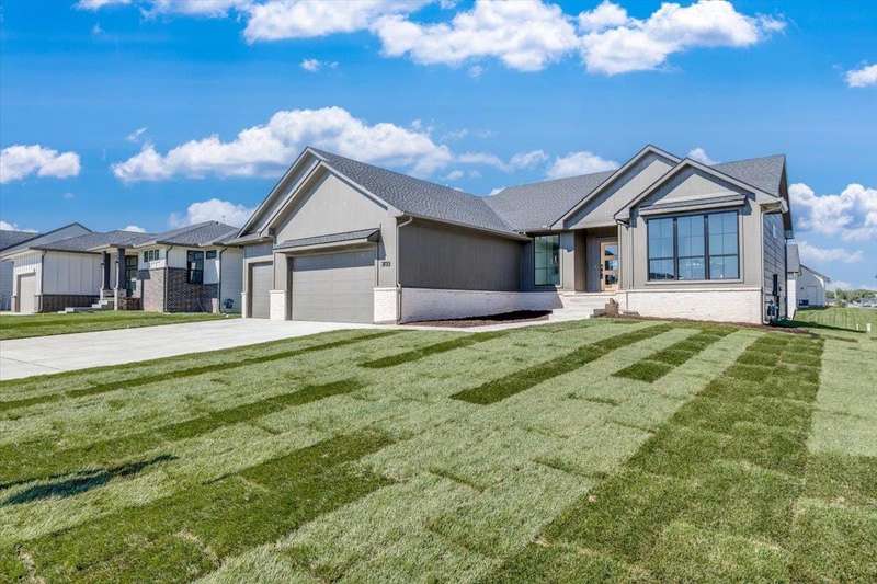 MODEL IS FOR SALE. Welcome to Socora's stunning Lockmoor plan that perfectly blends modern elegance and comfort. As you step inside, you're greeted with a warm and inviting space adorned with a beautifully decorative tray ceiling in the living area, adding a touch of sophistication. The beauty and warmth of the electric fireplace serves as a focal point creating the perfect ambience for entertaining guests or relaxing evenings. The kitchen is a chef's dream showcasing a sleek quartz island, ample counter top space, walk-in pantry and under-cabinet lighting adding a soft glow and functionality to all your cooking needs. The primary suite has its own ensuite with double vanities, fully tiled shower and suitable closet space. Two additional bedrooms on the main level share a stylish bathroom, providing comfort and privacy for the entire family. Another attraction of this plan extends to the basement serving as an entertainment hub with a wet bar, two more bedrooms and a full bath. Step outside to the large covered deck and oversized yard, ideal for outdoor activities and relaxation. This house is more than just a place to live, it's a lifestyle. Come experience it for yourself! Sod, sprinklers and well are included in the price. Fontana offers a zero-entry pool with splash pad, playground, walking paths and lakes. It's also minutes away from New Market Square for all your shopping and dining needs. A $175 mailbox key fee is collected at closing. LOWER SPECIALS, LOWER TAXES AND MAIZE SCHOOLS. All information deemed reliable and not guaranteed. OPEN THURS - MON 1:00-5:00 OR ANYTIME BY APPOINTMENT.