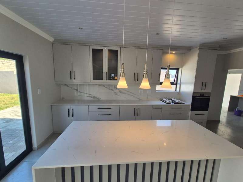 ? A Fresh Chapter Awaits in Vredenburg ? Step into a life where every sunrise feels like a promise. This brand-new 3-bedroom, 2-bathroom haven rests in one of Vredenburg’s most peaceful and sought-after suburbs — a place where modern elegance meets everyday comfort, and where your family’s story is ready to unfold. ? Where Comfort Meets Connection The moment you walk through the door, you’re greeted by sunlight spilling into a spacious, open-plan living area — a space designed for laughter, shared meals, and the simple joy of being together. The sleek, modern kitchen blends style with practicality, effortlessly flowing into the dining and lounge areas, creating a warm and welcoming heart for the home. ? Your Personal Retreats Each bedroom has been thoughtfully designed with built-in storage, soft, natural tones, and a calming atmosphere that invites rest. The main bedroom features a private en-suite — your own quiet sanctuary — while the second bathroom offers a family-friendly layout with a touch of modern flair. ? More Than Just a Garage The generous double garage not only keeps your vehicles secure but also offers extra space for hobbies, storage, or even your next creative project. ? The Magic of Outdoor Living Picture lazy mornings with coffee in hand, watching the first light dance across the green grass, or children’s laughter filling the air as they play barefoot in the sunshine. With room to grow a lush garden, host weekend braais, or plant your first veggie patch, this space is an open canvas for your outdoor dreams. ? A Community That Feels Like Home Here, you’re surrounded by schools, shops, and parks — all within easy reach — in a neighborhood where families flourish and neighbors become friends. ? Your New Beginning Starts Here More than just a house, this is a place to build your legacy, to fill with love, warmth, and memories that last a lifetime. All that’s missing… is you.
