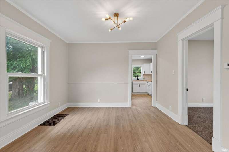 Welcome to this beautifully renovated two-story home, perfectly blending modern updates with classic charm. Nestled on a spacious lot, this inviting residence features 3 bedrooms (one on the main floor) and 2 full bathrooms, offers space for comfortable living. The main level offers a bright and open layout, including a cozy living room, a new kitchen, a dining room, and a versatile family room, ideal for entertaining or relaxing. A convenient main-level bedroom adds flexibility, while two additional bedrooms are located upstairs for added privacy. A charming enclosed front porch, perfect for morning coffee or evening sunsets. The property also includes a large garage for ample storage or parking along with an additional 18x18 workshop room and a full basement. A new furnace, new roof, and laundry hookups for a gas dryer and washer, this home is as practical as it is stylish. Don't miss the opportunity to own this move-in-ready gem!