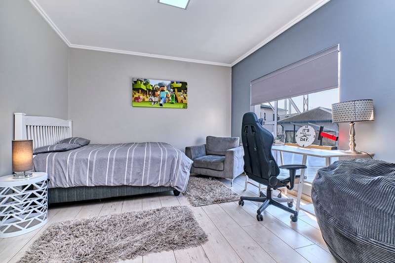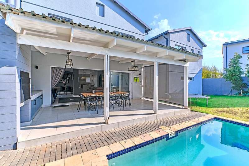 Welcome to your dream home! This stunning property features open-plan living areas highlighted by a cozy gas fireplace, perfectly positioned between the lounge and dining room, providing warmth and ambiance during the winter months. The inviting kitchen, complete with a separate scullery and neutral finishes. Enjoy seamless indoor-outdoor living with sliding doors that lead to a generously sized patio equipped with a built-in braai, overlooking a sparkling pool and a beautifully landscaped garden. Upstairs, you'll find four spacious bedrooms and three stylish bathrooms, including a convenient Jack and Jill bathroom. The main bedroom is a true retreat, boasting breathtaking views. All bedrooms feature elegant laminate flooring and soothing neutral color tones. This beautiful home also includes a double garage and staff accommodation, making it the perfect choice for comfortable family living. Don’t miss your chance to own this exquisite property! Disclaimer: Whilst every care has been taken in the preparation of this listing we cannot be held responsible for any errors/ omissions that occur.
