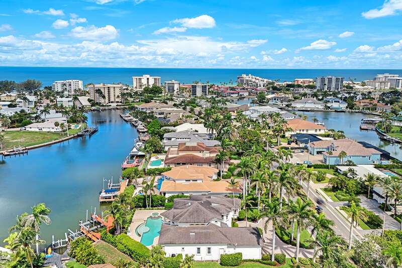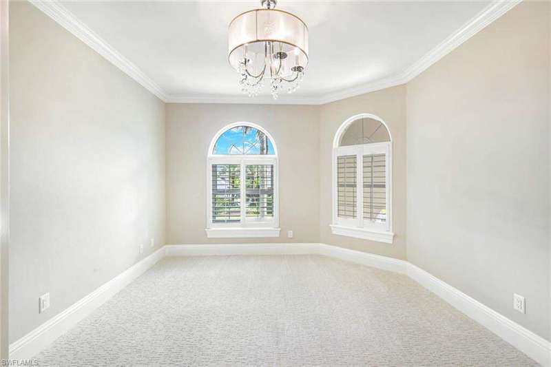 As you step into the formal living room, you're greeted by awe-inspiring water views framed by floor-to-ceiling windows, complemented by a cozy gas fireplace. Enjoy spectacular sunsets from your new residence in The Moorings, situated on .31 acres with southwest rear exposure on Compass Pass, where you'll find your boat dock with a lift that can accommodate a substantial-sized boat. Quick, direct Gulf access with one bridge is a boater's delight. Five bedrooms plus a den, a large bonus room, five and a half baths, as well as an oversized attached garage with a circular drive provide ample space for your car collection and street-legal golf cart. The generously sized family room, with pocketing sliding doors opening up to your amazing outdoor living space, will surely become a favorite spot for relaxing and enjoying time together. The sprawling master suite, with dual vanities, a jetted tub, walk-in shower, his-and-her custom closet systems, a separate library or den with beautiful French doors, and an additional first-floor en suite bedroom, offers ultimate comfort. Upstairs, you'll find three inviting bedrooms with custom closets and en suite baths, plus a pleasant bonus room with a wraparound balcony overlooking the fabulous pool and bay, perfect for a game room or media room. The grand gourmet kitchen, featuring a Thermador appliance package with a six-burner gas range and griddle, two dishwashers, a double wall oven, and a microwave drawer, is sure to excite any foodie. Dual Sub-Zero refrigeration, ample custom under-lit cabinetry with two islands, a fantastic oversized sink, and an ice maker make it perfect for entertaining. The impressive pool, with its expansive sundeck, jacuzzi, and summer kitchen, sits amid a beautifully landscaped, fully fenced backyard, ensuring privacy and security for your loved ones. Nestled on prestigious Mooring Line Drive, you're just moments away from Old Naples, the Venetian Village, Waterside Shops, and the exclusive Moorings private beach.