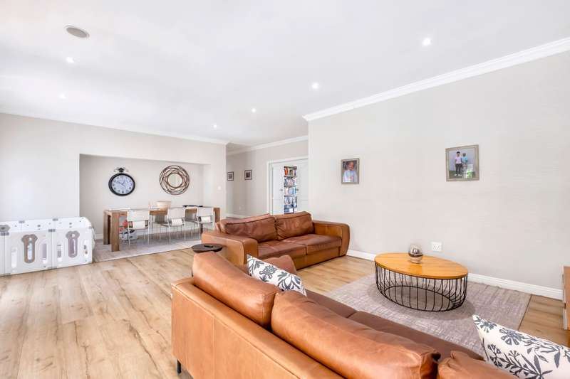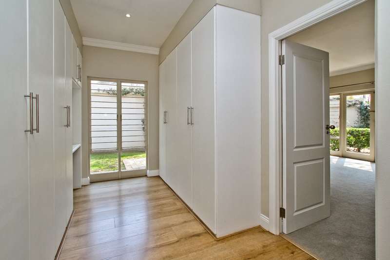 Gated enclave! 24hr security! Fully refurbished this delightful home manages to be cosy yet spacious. The flowing floorplan is functional, easy to live and light. From the welcoming entrance hall, the large open plan lounge/family room draws one in to the entertainers patio and garden. Sleek modern kitchen with caesarstone countertops, separate scullery and a gas/electric cooking facilities. 3 spacious bedrooms, 2 full bathrooms (2nd & 3rd bed with a " jack & jill bath) Refurbished bathrooms, newly laid laminate flooring. In pristine condition, the home awaits your personal touch. Extras : woodburner fireplace in lounge, generator, heat pump for pool, fibre, LED lighting, integrated speakers, staff & double garage. Optional road levy of R1700. Say hello to a great buy!