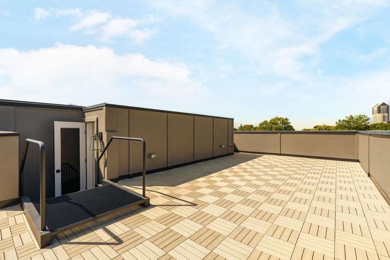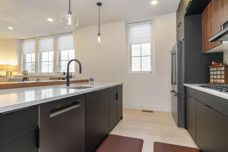 Experience sophisticated living in this professionally designed, executive three-bedroom, four-bathroom home. This single-family dwelling is located on the edge of German Village in desirable Schumacher Place. Boasting beautiful wood floors throughout three spacious levels and a large fourth-floor rooftop patio with panoramic views. This European influenced residence features tall ceilings, abundant sunlight and the luxury of an elevator. The stunning kitchen includes Bosch appliances and a large island ideal for entertaining in the adjacent, expansive dining and living area. All bedroom suites feature custom closets, while the third bedroom has a Murphy bed allowing flexibility for a recreation or exercise area. This home is enhanced by remote operated window blinds throughout, an integrated office area, and spacious storage on each floor. Benefit from an entry-level 2-car attached garage prewired for electric vehicles and a location close to everything that Columbus and the German Village area have to offer. See A2A remarks.