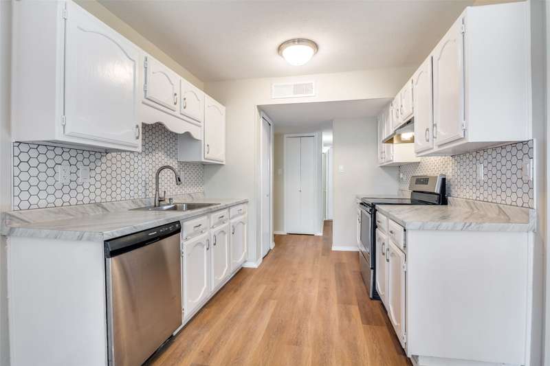 Charming fully remodeled 3-bedroom, 2-bath single-story home nestled on a quiet cul-de-sac. Designer finishes throughout give this home a fresh, modern feel. The inviting living room features a cozy fireplace, perfect for relaxing or entertaining. The kitchen boasts stainless steel appliances, a breakfast nook, and a formal dining area for gatherings. Both bathrooms have been recently remodeled with designer finishes. Enjoy outdoor living with a wood fence and mature trees providing shade and privacy. Conveniently located with quick access to I-30 and 635, just minutes from Town East Mall, shopping, and dining.