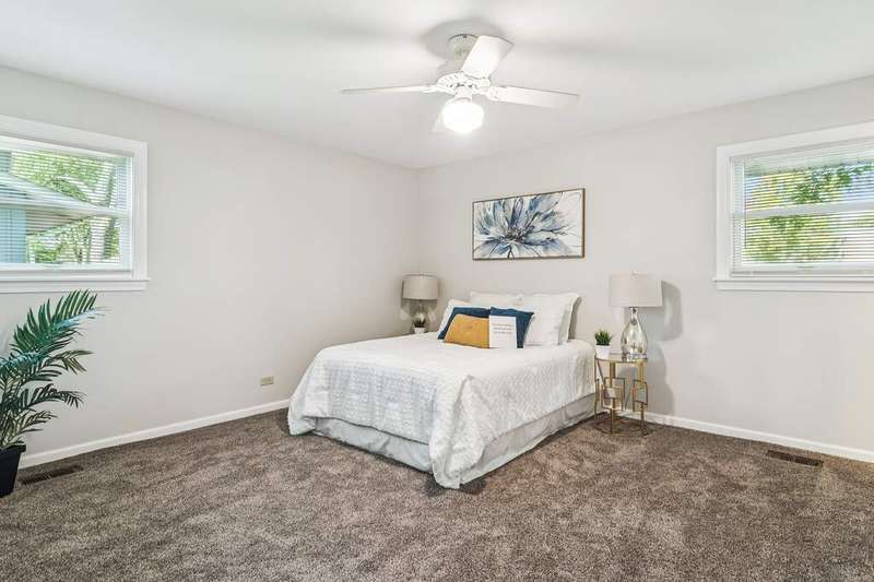Welcome to this well-maintained 3-bedroom, 2-bath home in the heart of Palatine! The spacious layout offers both a comfortable living room and a nice-sized family room, perfect for everyday living and entertaining. Freshly painted throughout, the home features newer carpet and durable vinyl plank flooring. The primary suite includes a private attached bathroom and generous closet space, while the full hallway bath has been recently updated for today's style and convenience. Major updates bring peace of mind, including a brand-new furnace (2025), newer roof, carpet, doors, and millwork (2020). Enjoy a fantastic location that backs to Virginia Lake Elementary and is within walking distance to Palatine High School. Just blocks from neighborhood parks and the Palatine bike trail, this home offers both comfort and convenience in one. Don't miss this move-in ready opportunity in a desirable community!