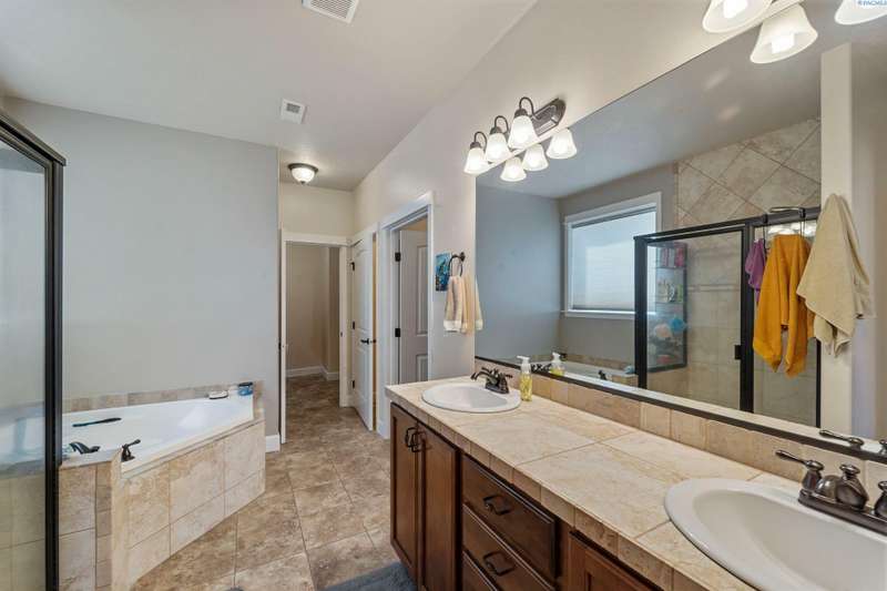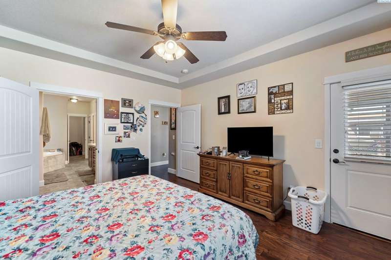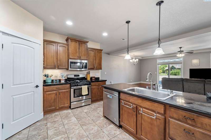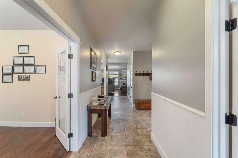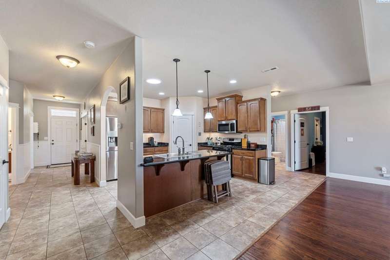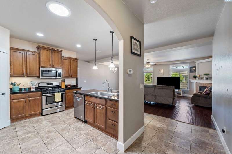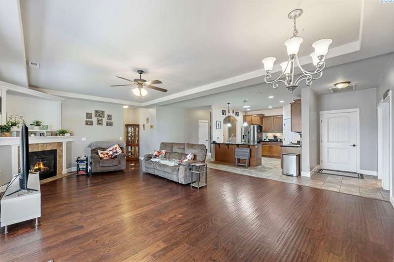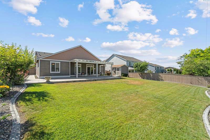 MLS# 285545 Welcome to this spacious and thoughtfully designed practical floorplan. Located in the heart of Kennewick near parks and miles of walking paths. Built in 2011, this single-level gem features no steps whatsoever; ideal for comfort and accessibility. This 3-bedroom, 3 full bath home with an office or den has raised ceilings, rich wood flooring, central A/C, granite countertops, and natural gas throughout-including the furnace, hot water tank, kitchen stove and cozy fireplace. Each bedroom hosts a walk-in closet, offering ample storage and personal space. You'll enjoy the outdoors from your HUGE covered back patio with pergola, perfect for entertaining or relaxing in the beautifully landscaped, fully fenced backyard. With a rock-accented front, the covered front porch and a location that's close to everything, this home truly has it all. Call your Realtor today to schedule a showing and see what else this home has to offer. *Home was pre-inspected and repairs have been made. Report available with an offer.
