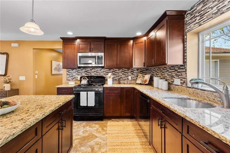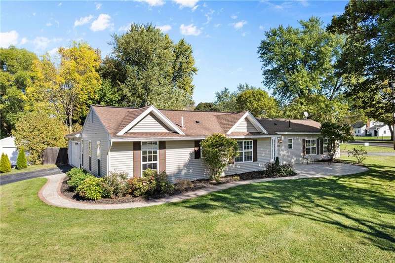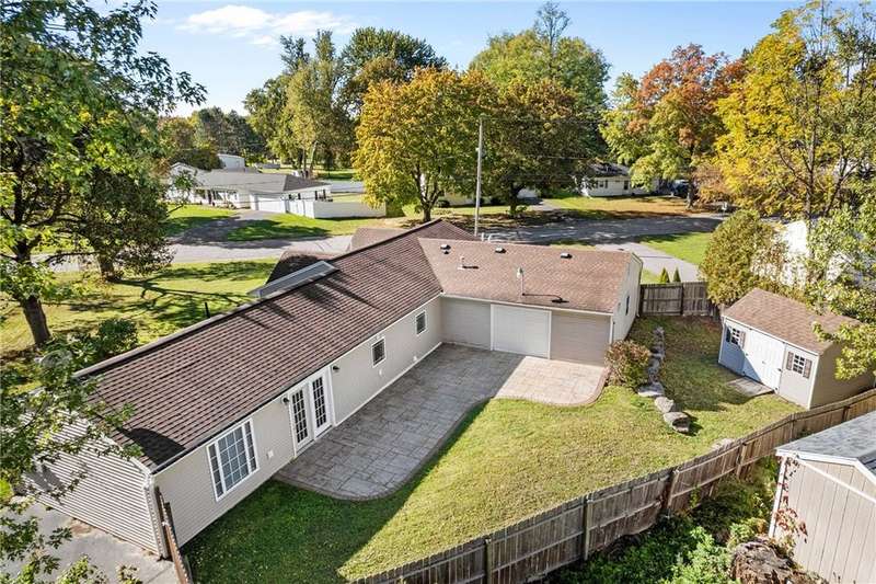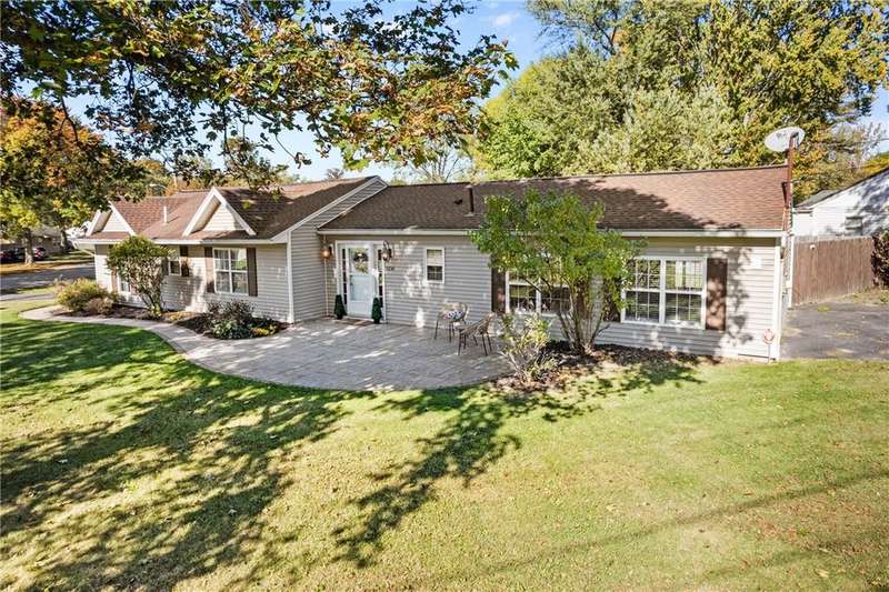 BEAUTIFULLY UPDATED RANCH IN WEBSTER VILLAGE*WELCOME TO THIS STUNNING 1723 SQ FT RANCH OFFERING MODERN COMFORT AND STYLISH UPDATES THROUGHOUT*FEATURING 3 BEDROOMS AND 2.5 BATHS, INCLUDING A PRIMARY EN SUITE*THIS HOME SHOWCASES AN OPEN CONCEPT LAYOUT HIGHLIGHTED BY CATHEDRAL CEILINGS, RECESSED LIGHTING AND A BRAND NEW GAS FIREPLACE WITH A STRIKING LEDGER STONE WALL*THE LIVING AREA ALSO INCLUDES A WET BAR WITH WINE CHILLER, CREATING AN IDEAL SPACE FOR GATHERINGS*THE SPACIOUS KITCHEN IS A CHEF'S DREAM, FEATURING GRANITE COUNTERTOPS, AN OVERSIZED ISLAND WITH PENDANT LIGHTING, A BRAND NEW GLASS TILE BACKSPLASH, AND A CONVENIENT DOOR LEADING TO A STAMPED CONCRETE PATIO-PERFECT FOR ENTERTAINING*MAIN FLOOR LAUNDRY ROOM WITH INCLUDED APPLIANCES AND WASH SINK*ADDITIONAL HIGHLIGHTS INCLUDE NEW PORCELAIN PLANK FLOORING IN THE LIVING ROOM AND ALL BEDROOMS, FRESHLY PAINTED WALLS AND CEILINGS THROUGHOUT, A NEW SECURITY SYSTEM AND PANELS, AND UPGRADED, ALL NEW ATTIC INSULATION FOR IMPROVED EFFICIENCY*OUTSIDE, A MEANDERING STAMPED CONCRETE WALKWAY WELCOMES YOU TO THE FRONT DOOR, WHILE A SHED PROVIDES EXTRA STORAGE*THE MAIN DRIVEWAY IS CONVENIENTLY LOCATED ON IROQUOIS, WITH AN ADDITIONAL PARKING AREA/DRIVEWAY ON STATE*CHECK OUT THE DOUBLE GARAGE DOORS, WHICH OPEN TO THE BACKYARD PATIO*WITH OVER $45,000 IN RECENT IMPROVEMENTS, THIS MOVE-IN READY RANCH BLENDS MODERN STYLE, THOUGHTFUL DESIGN, AND VILLAGE LIVING AT ITS BEST*DELAYED NEGOTIATIONS, TUESDAY OCTOBER 21 AT 2 PM*