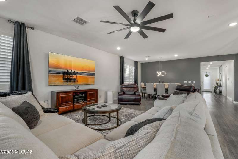 Welcome to a stunning 2023 build that blends modern comfort with custom upgrades rarely found at this price point. Offering 4 bedrooms and 3 bathrooms in a thoughtful split floorplan, this home is turnkey and an incredible opportunity.Step inside to find plantation shutters throughout that add timeless style and energy efficiency. The fresh color scheme creates a crisp, welcoming atmosphere, while a whole-home water filtration system provides peace of mind and everyday convenience.The heart of the home opens to a spacious living area that flows seamlessly into the kitchen and dining spaces--perfect for entertaining or relaxing with family.