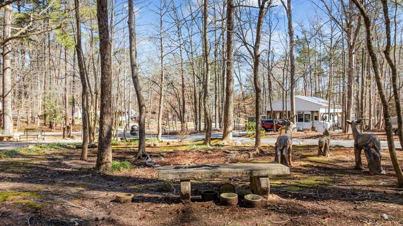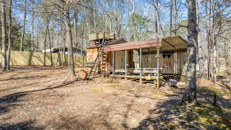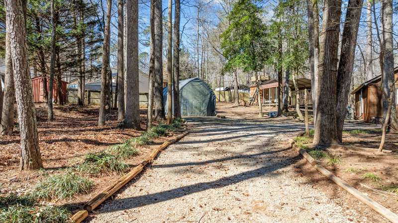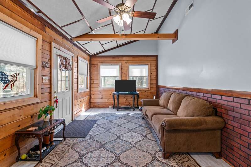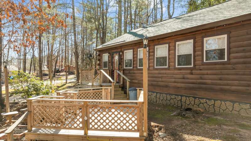 CHARMING LOG CABIN STYLE BUILD-OVER SITS PRETTY ON TRIPLE LOT!!! PROPERTY SOLD AS-IS!! Tranquil and Serene Setting For Relaxing or Entertaining Family and Friends! All Appliances Including Stack W/D Convey In This 2B/1FB Rustic Retreat! Easy-Care LVP in Roomy Living/Dining Area! Custom Blinds! Updated Lighting! Pull-Down Attic Storage! Roof 2022! Mini-Split HVAC! Additional Gas Wall Unit For Back-Up! Septic Serviced 2021! Multiple Decks for Seating and Enjoying the View! Firepit! Lots of Windows for Plenty of Natural Light! 18x24 Carport! 12x12 Shed! 11x20 Portable Garage w/Concrete Pad! New Privacy Fence! Convenient to Boat Launch! GATED COMMUNITY ON 345-ACRE LAKE W/18-HOLE GOLF AVAILABLE!! TWO GOLF MEMBERSHIPS INCLUDED PER HOUSEHOLD!