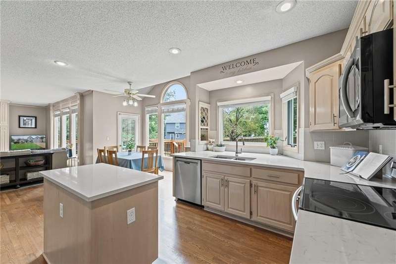 This meticulously cared for home is ready for its next chapter. Great location with a large, fenced yard. Brand new deck, new counters and some new flooring and paint. You won't want to miss this amazing property, a beautifully maintained home nestled in the heart of the highly sought-after Woodsonia neighborhood. This spacious residence features a light-filled open floor plan with soaring ceilings, large windows, and warm hardwood floors. The kitchen is a chef’s delight with new quartz countertops, ample cabinet space. The living room offers a cozy fireplace and easy flow to the dining area and backyard patio. Upstairs, the expansive primary suite boasts a walk-in closet and a luxurious en suite bath with dual vanities, a soaking tub, and a separate shower and new LVT flooring. Primary suite features a bonus space, perfect for an office, nursery or sitting room. You could easily turn this into a 4th bedroom - see floorplan for details. Additional bedrooms are generously sized with ample closet space. Located on a quiet street with mature trees, this home is just minutes from top-rated schools, parks, shopping, and easy highway access. Experience the charm, space, and convenience of Woodsonia living!