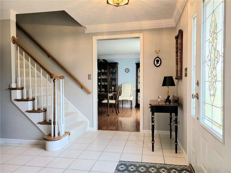 Pristine condition. New Roof. Home is on a quiet cul-de-sac street. Living room could serve as an office with beautiful glass french doors. Formal dining room with custom crown molding and a large bay window. Kitchen has freshly painted solid wood cabinets, granite, a sunny eat-in area, a desk area and stainless appliances with steps to the four season sunroom. A very large family room with a gas log fireplace. The owner's suite is light and bright with a tray ceiling, large walk-in closet and a ceramic bath with a new quartz counter & two sinks next to a whirlpool tub and glass shower. The three remaining bedrooms are generously sized all with new white wall to wall carpeting. The lower level game room has a full bath, walk-in closet and several storage areas and cabinets and a counter the width of the room. This room could also be a fifth bedroom. Manicured grounds, a sprinkler system and Versalock retaining wall. Close to McKnight shopping district with school & public bus service.