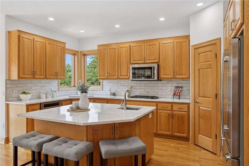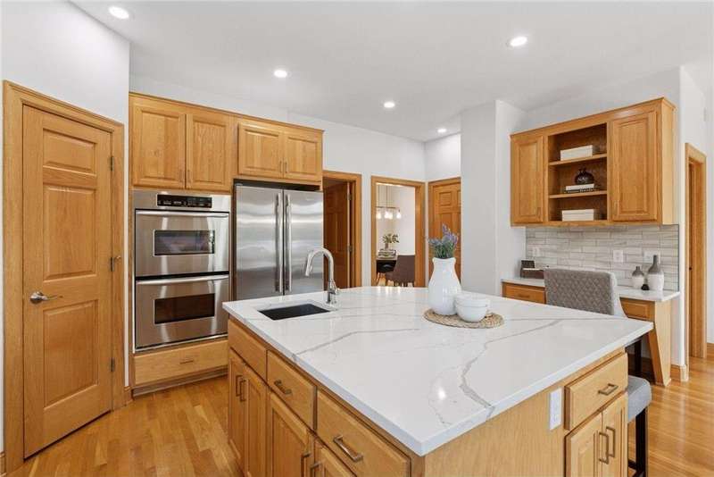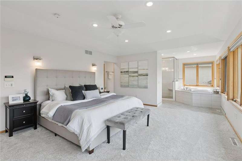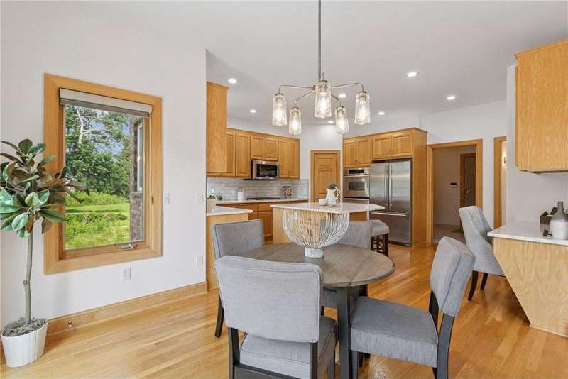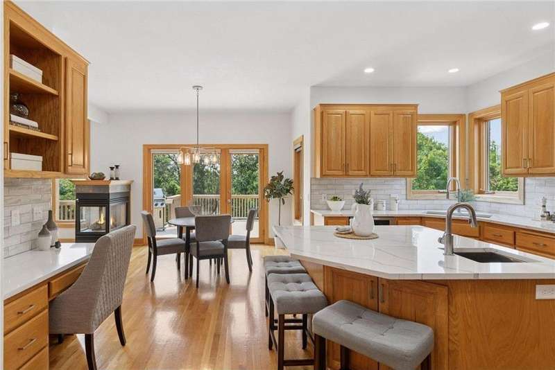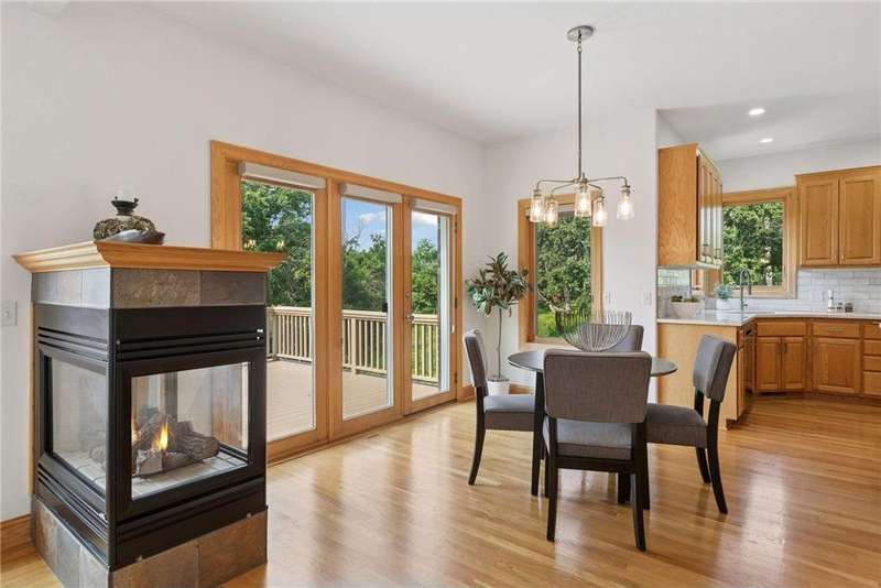 Space, privacy, and natural beauty—without leaving the city behind. This stately one-of-a-kind, custom-built home sits on 3.5 lush, wooded acres perched above the majestic Minnesota River Valley, offering stunning views, sunsets, and total serenity just 20 minutes from downtown Minneapolis. Built in 2001 and recently updated with many new improvements, the home offers an estate-like feel with understated elegance and timeless charm. It features large rooms, high ceilings, and an abundance of natural light and views through walls of oversized, south-facing windows. Inside, watch the oasis of wildlife as the birds fly high and mature trees of the sanctuary blow against the sky. The floorplan is great—efficient, yet flowing, spacious and flexible. The light and bright kitchen is recently updated with gorgeous quartz countertops, a modern backsplash, and new appliances to compliment the Wolf cooktop. The large primary ensuite is fully remodeled with a spa-like Jacuzzi tub, spacious waterfall shower, dual vanity and enormous walk-in closet. The size of the suite and treetop, atmospheric views in the summer and expansive river valley views in the winter make it uniquely special. Cozy up to the dual-sided gas fireplace—there is one on each floor. All bedrooms and laundry are conveniently located on one level. Enjoy peaceful mornings on the sunny deck, unwind in the elevated 3-season porch, or wander the Zen gardens and acreage that is your secluded retreat—or canvas. It’s a huge lot that gives you options—to expand, split, or simply enjoy the abundance of natural space. The backyard is newly fenced, landscaped, and has a freshly poured concrete patio to enjoy the sunshine and beauty with friends and family. This property is truly a private retreat and one of its kind.