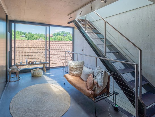 Rising above the meadows and fields of the Ennetsee countryside, this remarkable landmark could almost be mistaken for a church or monastery. In fact, it is a former spinning mill with its own tower, dating back to 1863, when the power of the Lorze River first drove its machinery. In 2000, the building underwent a meticulous transformation into four extraordinary loft residences. Today, the spectacular “SOHO HOUSE” loft occupies the entire west side – including the tower – and offers a private garden with a pergola, jacuzzi, and sauna. Inside, expansive floor-to-ceiling windows and skylights flood the interiors with natural light. The authentic factory character has been preserved through the original structure and exposed walls, while contemporary architectural design elements create a refined contrast, delivering a truly unique living experience. The location balances serenity with convenience: in the village of Hagendorn, a local shop with post office, restaurant, and primary school are just steps away. Nearby Cham, stretching along the shores of Lake Zug, offers diverse shopping and dining options, while the picturesque old town of Zug awaits with its historic boutiques, cafés, and cultural highlights. Zurich, Lucerne, and Zurich Airport are all within easy reach via the A3 motorway. For leisure, Lake Zug invites you to enjoy water sports, while the surrounding countryside offers hiking trails, horse riding, golf courses, and charming farm shops. The nearby Frauental Monastery impresses with its Rococo church and artisanal products. To the south, the Swiss Alps beckon – with the legendary Rigi mountain and family-friendly ski areas just 20 minutes away. The SOHO HOUSE loft combines the industrial heritage of a historic factory with the comfort and sophistication of modern luxury living – a rare opportunity in one of Switzerland’s most desirable regions.