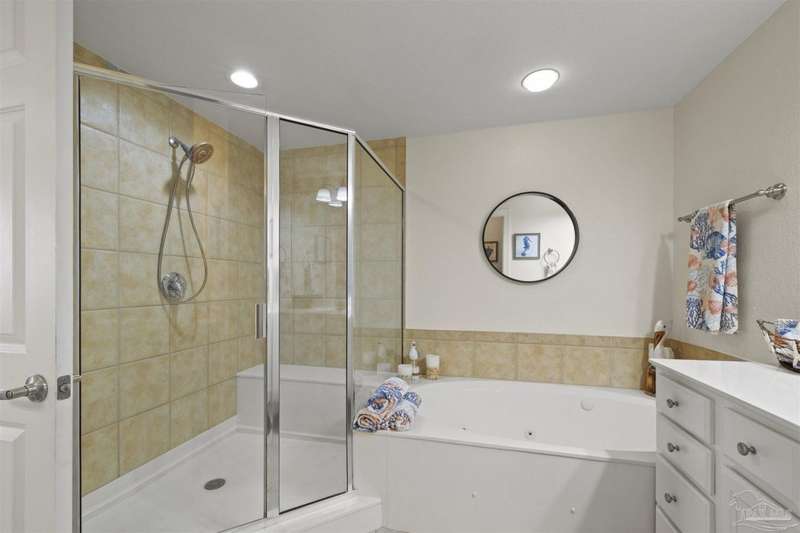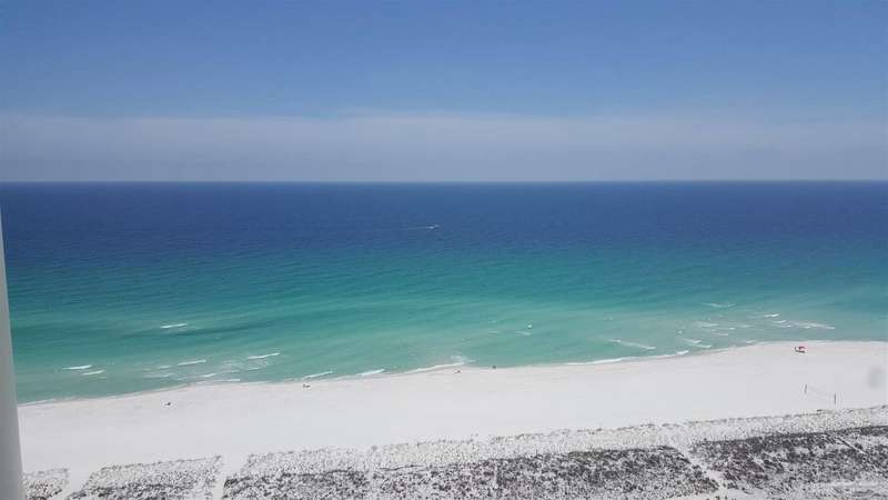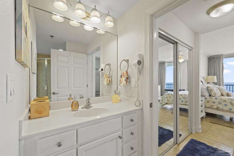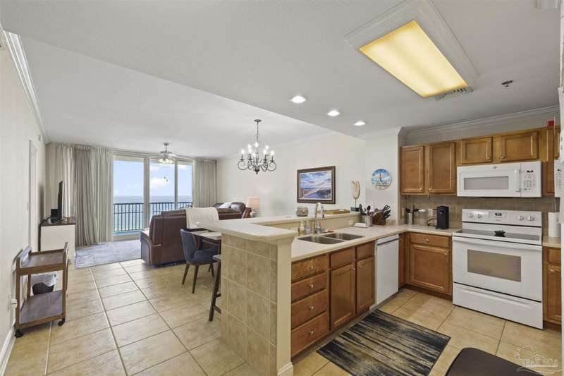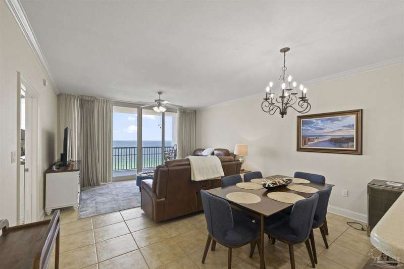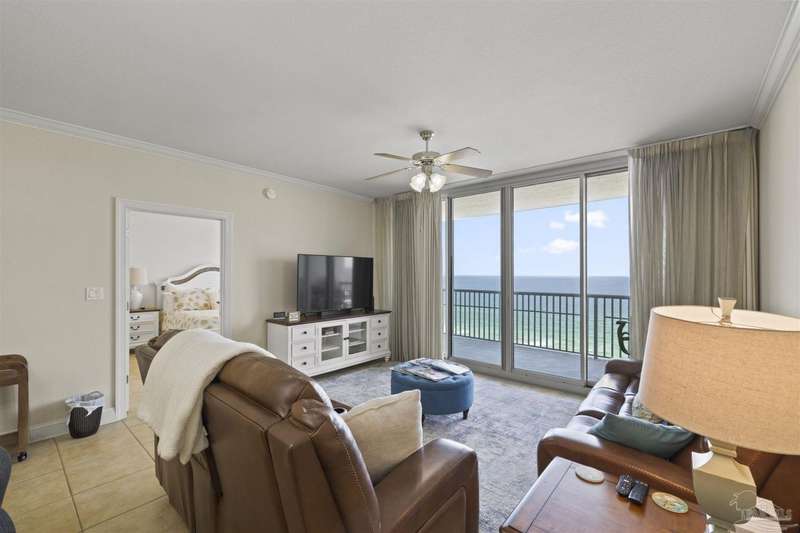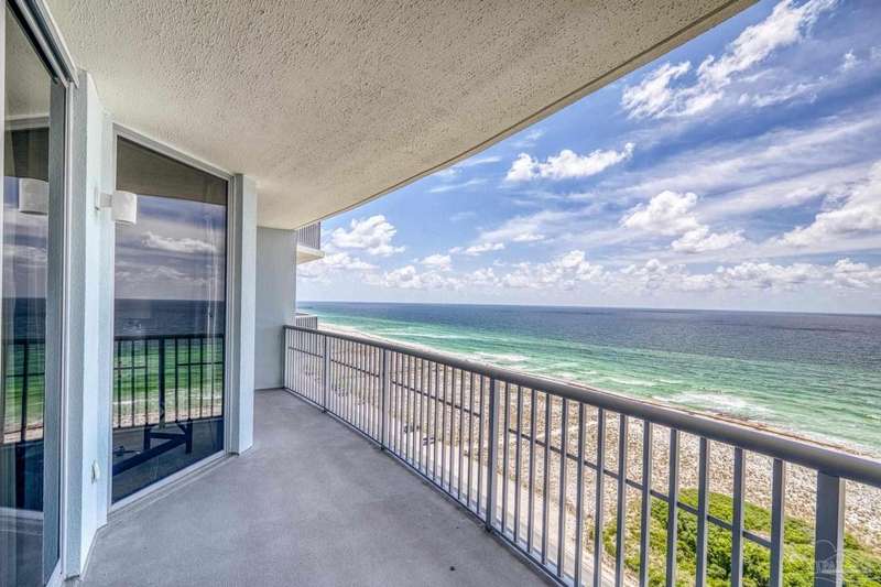 Enjoy breathtaking, unobstructed views of the Gulf from a 15th-floor, beautifully maintained, fully furnished 3BR/2BA condo in the desirable Emerald Dolphin. This spacious unit features tiled flooring, an open-concept living/dining area, a fully equipped kitchen, and a large balcony perfect for dolphin watching and Blue Angels flyovers. The primary suite offers balcony access, dual closets, and a luxurious en-suite bath with a jetted tub, separate shower, and dual vanities. Includes two deeded, covered parking spaces and two private storage units. Never rented and move-in ready. Resort-style amenities: pool, hot tub, fitness center, and boat storage. Coastal living at its finest!