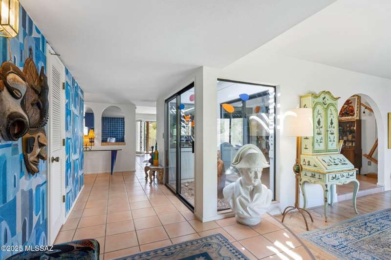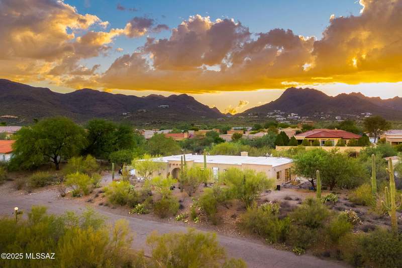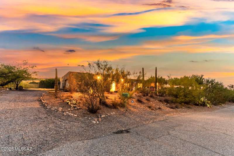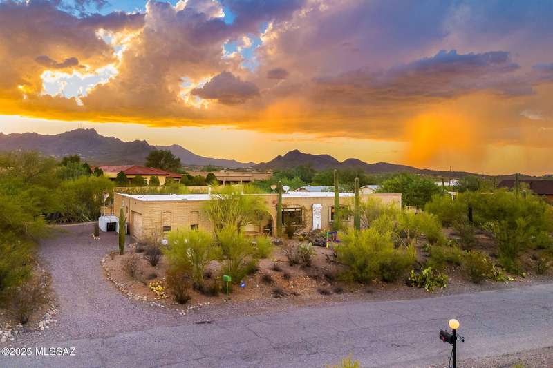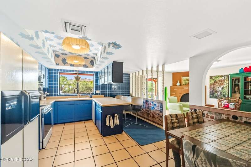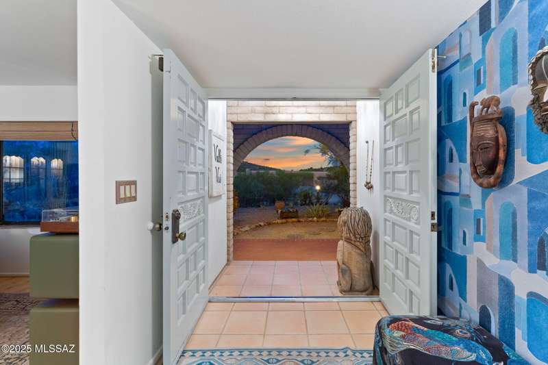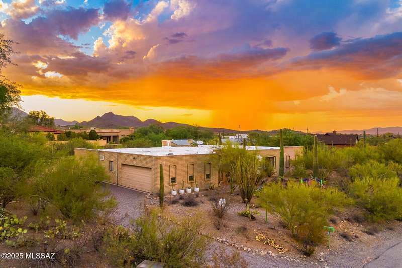 Price Ranged: Seller will counter or accept offers between $660,000 and $695,000. Welcome to Smoketree Circle -- located on Tucson's desirable Westside, just minutes from Downtown, the U of A, Banner Medical, The Mercado, and freeway access. Tucked away on a quiet cul-de-sac with no HOA, this highly stylized home offers privacy, serenity, and a full acre alive with desert views, native wildlife, and a refreshing pool for warm Tucson days. Inside, the residence has been elevated by one of America's top interior designers, featuring freshly painted interiors, popcorn ceilings removed, new Samsung appliances, and bold wallcoverings including Scalamandre Riad and vintage 1970s paper. The kitchen showcases hand-painted cabinetry, Zia Terracotta tile, a Kohler farm sink with satin-gold hardware,