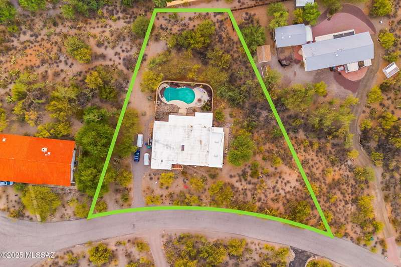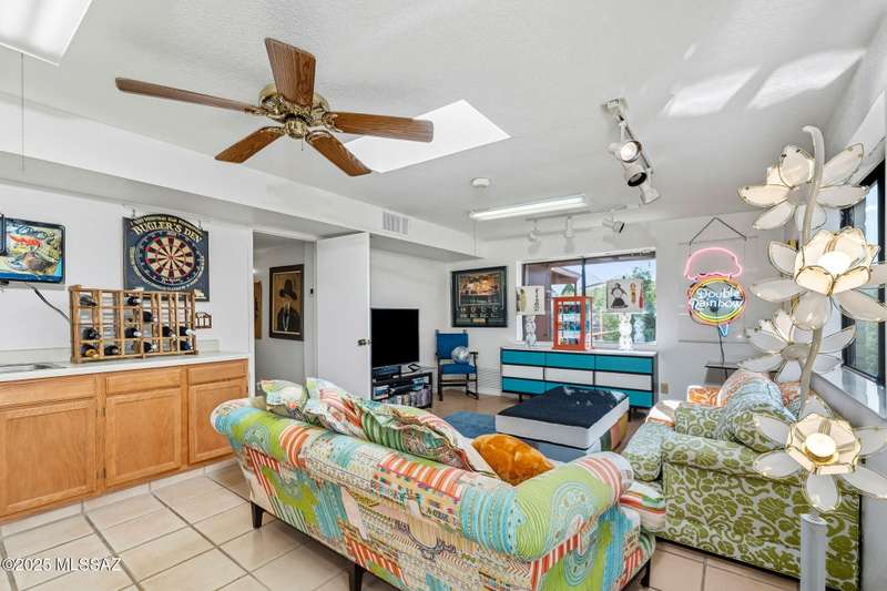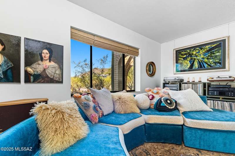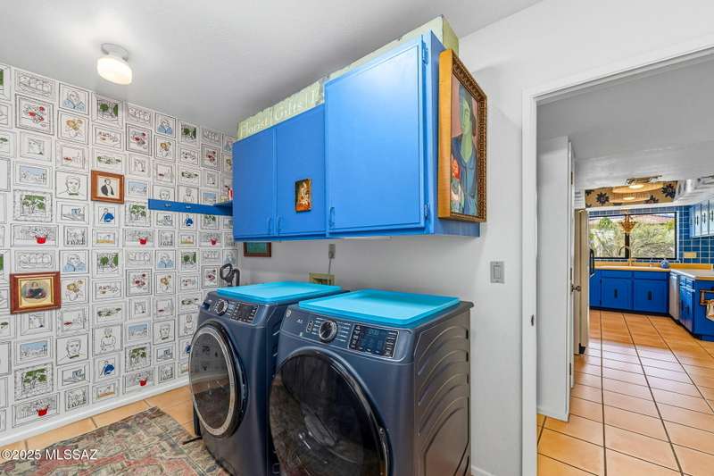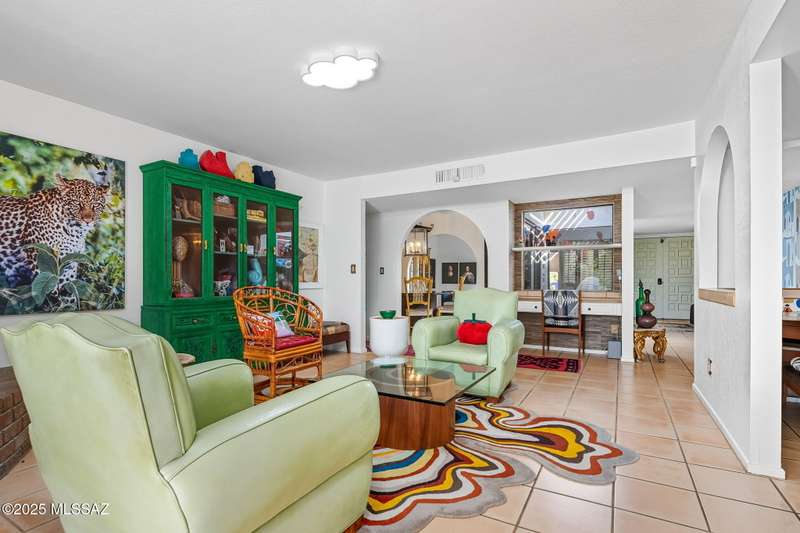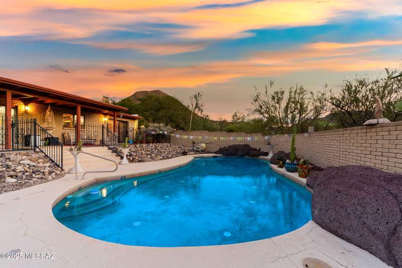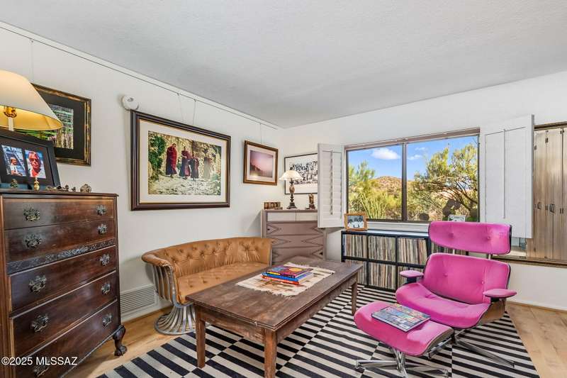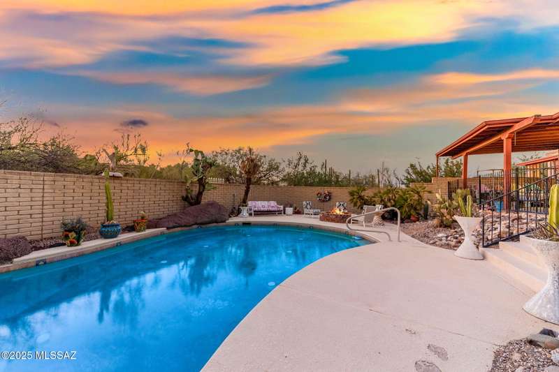 Price Ranged: Seller will counter or accept offers between $660,000 and $695,000. Welcome to Smoketree Circle -- located on Tucson's desirable Westside, just minutes from Downtown, the U of A, Banner Medical, The Mercado, and freeway access. Tucked away on a quiet cul-de-sac with no HOA, this highly stylized home offers privacy, serenity, and a full acre alive with desert views, native wildlife, and a refreshing pool for warm Tucson days. Inside, the residence has been elevated by one of America's top interior designers, featuring freshly painted interiors, popcorn ceilings removed, new Samsung appliances, and bold wallcoverings including Scalamandre Riad and vintage 1970s paper. The kitchen showcases hand-painted cabinetry, Zia Terracotta tile, a Kohler farm sink with satin-gold hardware,