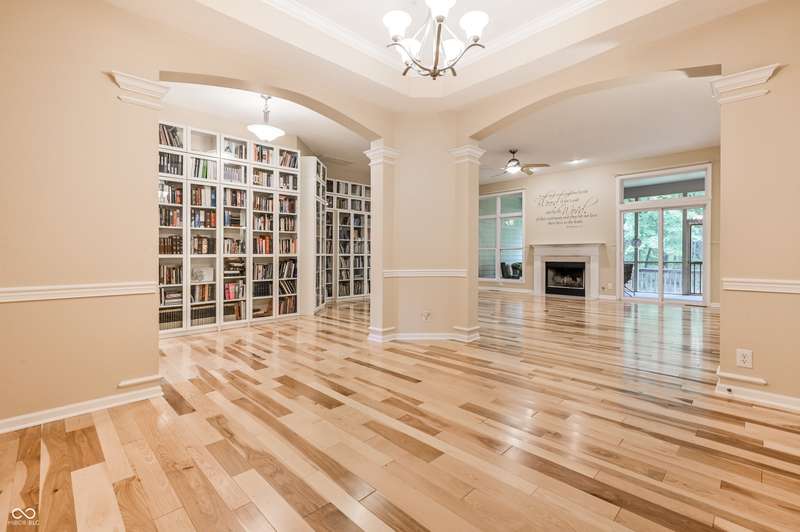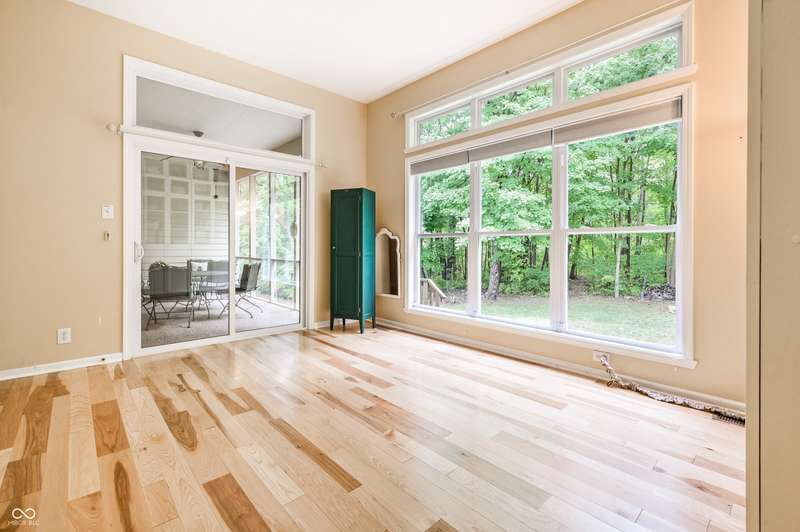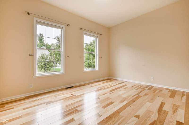 Step into a home that effortlessly welcomes you! Nestled on a quiet cul-de-sac in The Preserves of Eagle Creek, this stunning residence features 4 bedrooms, 3 bathrooms, a 3-car garage, and a sought-after open-concept layout-perfect for family living or entertaining on any scale. Gleaming, newly installed hickory floors flow throughout the main level, creating a warm and inviting atmosphere that instantly transforms this house into your home. The main-level primary suite offers privacy and comfort, complete with a spacious ensuite bathroom and walk-in closet. Upstairs, a generous ensuite provides a luxurious retreat for family or guests. Need a quiet space to work or reflect? The office with sliding glass doors overlooks the screened back porch and serene, wooded backyard-an inspiring setting for your next "big idea." The unfinished basement spans over 2,300 square feet, ready to become your ultimate entertainment space, home exercise space of 20x16 with a mirrored wall, with rough-ins for a full bath and bedroom, plus abundant storage options. Centrally located near I-65, just 15 minutes from downtown Indianapolis, with shopping, fine dining, and the renowned Eagle Creek Park just minutes away, this home combines convenience with beauty. Experience it for yourself-schedule a tour today. This home is truly worth your time!