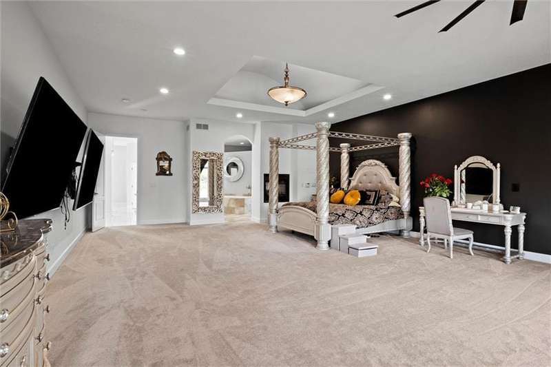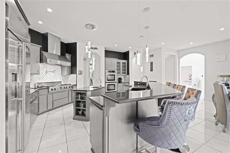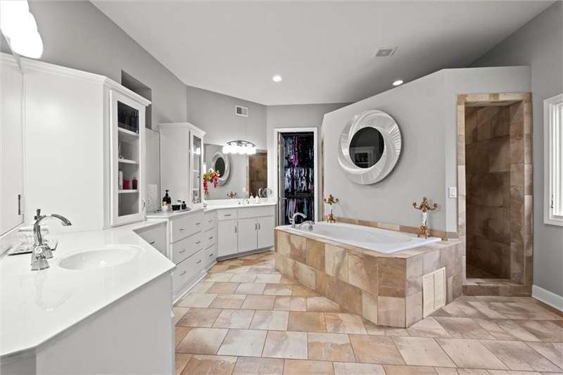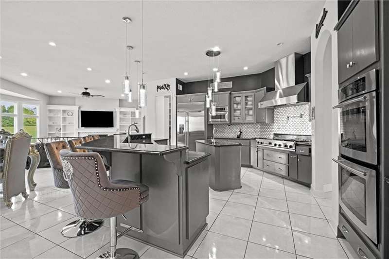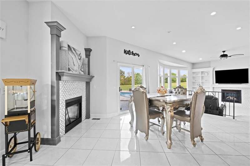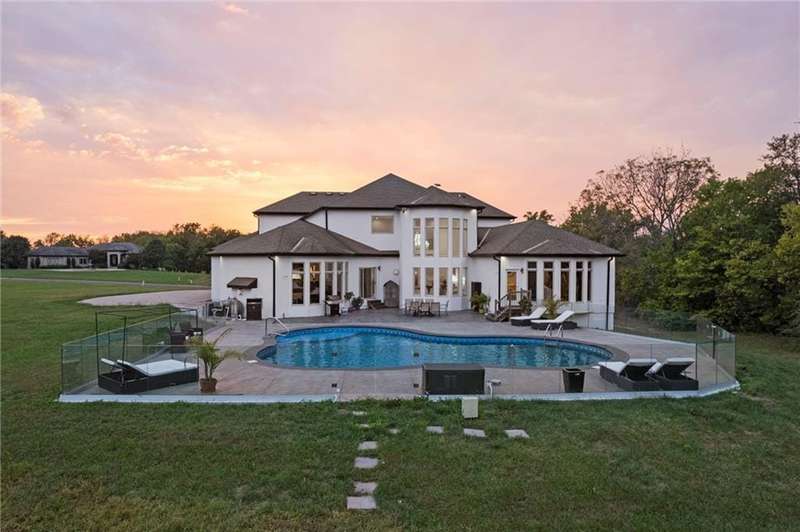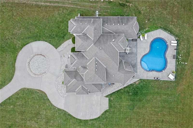Stunning luxury estate on 4 acres in the coveted Wildflower Subdivision! Centrally located in highly desired Lee's Summit, featuring top-rated schools, and bordering the communities Legacy Park Complex where you will find 692-acres with softball, baseball, football and soccer complexes. The park also includes 3 shelters, Lovell Community Center, a 22-acre lake with fishing dock, disc golf course, amphitheater, playground, and a 4.7-mile trail. -- This home offers 5 bedrooms plus a 6th & 7th nonconforming in basement, a dedicated office on main level, 4 full and 3 half baths, and oversized 4-car garages. Soaring 20' entry ceiling & 22' formal living ceilings with floor-to-ceiling windows and a see-through fireplace into the chef's kitchen, which features a top of the line Viking Refrigerator, 6-burner gas stove, Dual Islands with Prep Sink, 2 dishwashers, Pot Filler, Granite Counters, and a large walk-in pantry with built-in counter space. The oversized primary suite includes direct access to the pool, a see-through fireplace into the spa-like bath with whirlpool tub, dual vanities, dual-head shower, and a huge 3-tier walk-in closet with private laundry. Upstairs features a large loft, walk-in closets in every room, and a second laundry. The newly finished walkout basement was just finished in 2025 w/ upgraded tile throughout and offers true multigenerational living potential with its own 4th car garage, full kitchen with New SS appliances and walk-in pantry, 3rd laundry area, 3 living room/recreational areas, theatre room, 3 bedrooms (2 non-confirming), 3 bathrooms, and a walkout to the side yard. The backyard is an entertainer's dream w/ a nearly new heated vinyl pool, new stamped concrete patio, & glass fencing, plus tons of open backyard space for recreational sports. Additional features include a Reolink hardwired security system w/ 16 cameras, oversized deep garage bays, a beautiful circle driveway, & abundant storage. Upgraded lighting and plumbing throughout.