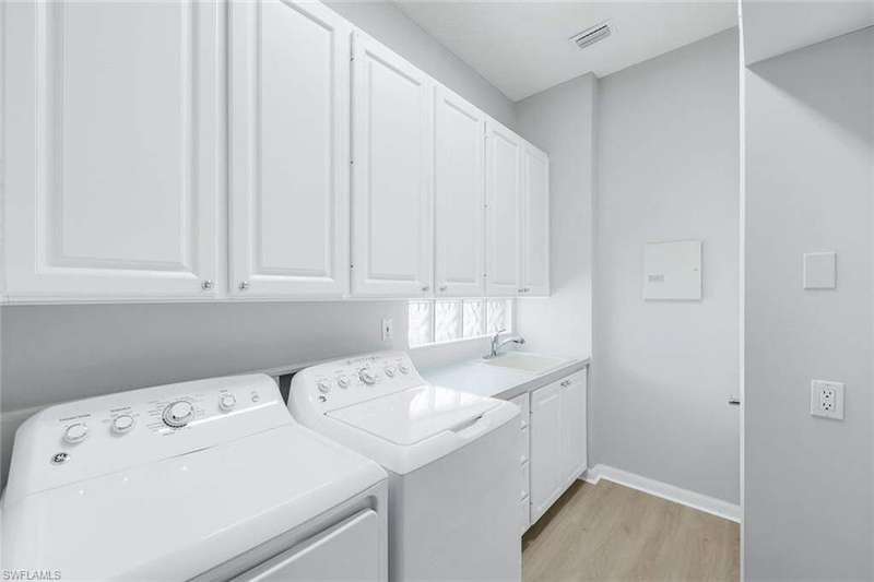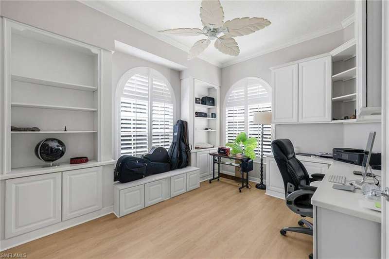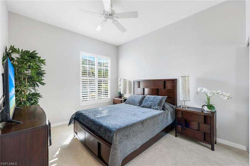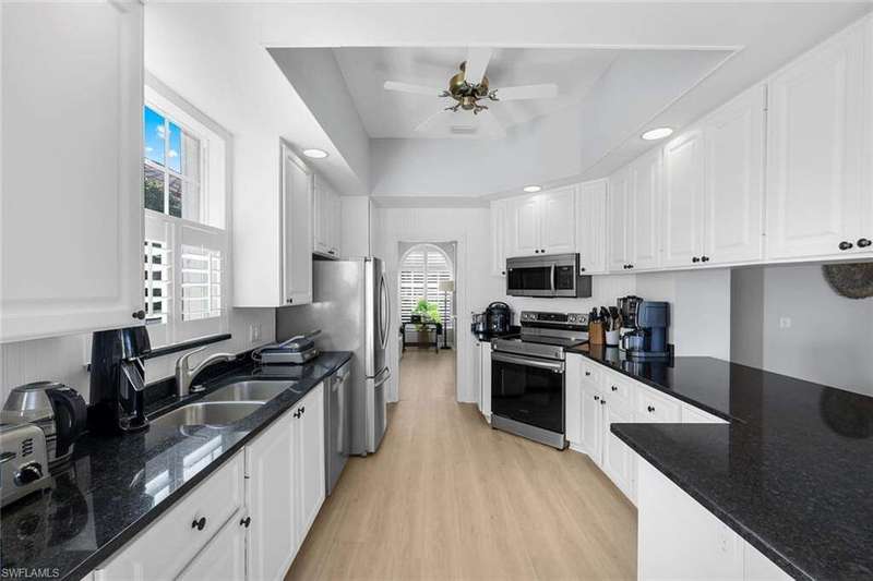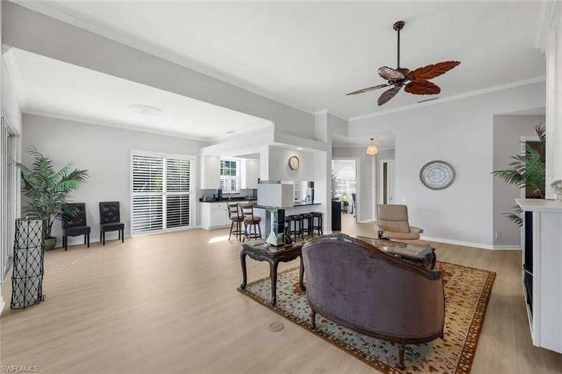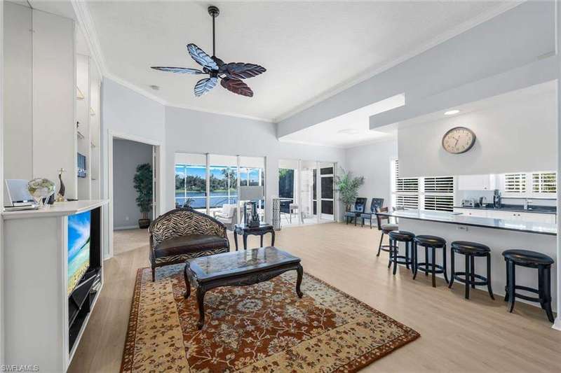 Magnificent Oakmont single-family pool home with arguably one of the best wide lake views in Village Walk! Situated in the center of Village Walk and located on the largest part of the main lake gives you a perfect picturesque postcard like view of the town center and several of the amenities, some of which are lit up at night to enhance your evening experience not to mention the magnificent sunsets and sun rise. This beautiful 3 bedroom plus den residence is perfectly situated on a quiet cul-de-sac offering privacy and an extended driveway which provides an abundance of guest parking. Recent upgrades include new beautiful flooring and new roof in 2017. The open and bright Oakmont floor plan features volume ceilings, built-in shelving, and a spacious great room that opens to the screened lanai, private pool and of course stunning lake view. Spacious master bedroom offers a view of the pool and lake, lots of closet space and separate his and hers bathrooms. Village Walk offers resort-style amenities including three community pools (one lap pool), six tennis courts, three pickleball courts, bocce, walking and biking paths with charming bridges, and The Spot restaurant-a favorite gathering place for residents offering great food, trivia nights, and a friendly atmosphere. The community is dog-friendly, allowing up to three large dogs. Offered partially furnished and ideally located just minutes to Mercato's dining and shopping and about five miles to Vanderbilt Beach.