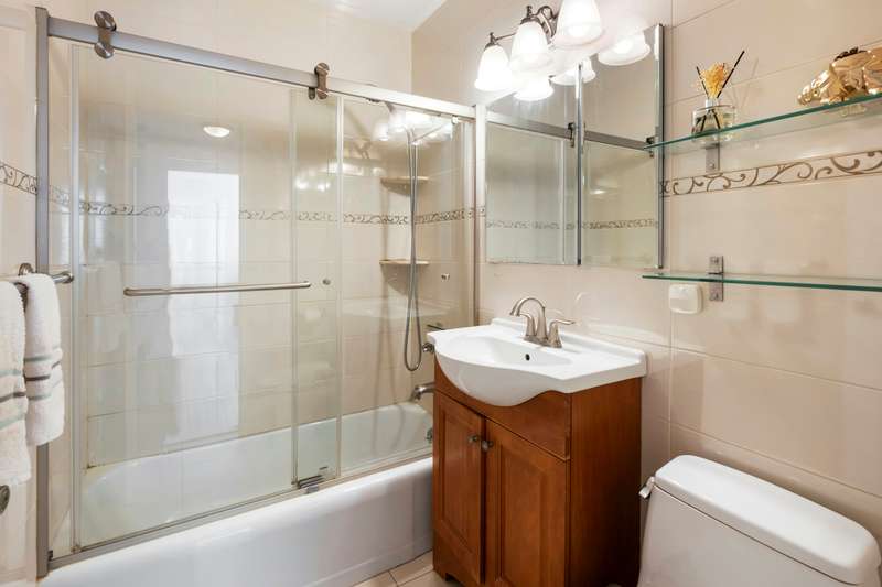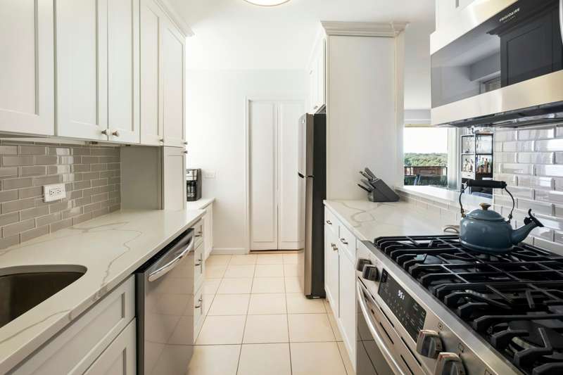 Kennedy House luxury awaits you in this mint Jr. 4, one-bath unit fully renovated into two-bedroom dream. Living room with overhead soffit LED lighting leads to south-facing terrace through large patio door and window. Windowed Chef's kitchen features high-end stainless steel appliances, veined quartz countertops and glass tile backsplash, open pass-through and bar height countertop allow you to join the party! Primary bedroom features large windows, overhead soffit LED lighting, fully redone step-in closet, cozy reading nook near very large window, central A/C and heating unit. Second bedroom easily fits a queen-sized bed and functions perfectly as a bedroom/office with closets, window, heat and central AC unit. Completely redone all-tile bathroom has new glass shower enclosure, Toto toilet, large mirror vanity. Flawless oak plank floors throughout, all lighting dimmable LEDs. Famous Kennedy House amenities abound: ; Seasonal private rooftop pool, health club (included) Skyroom for events and movie nights, outdoor rooftop conversation coves. 24-hr. doorman, concierge, live-in bldg. manager and 24/7 garage attendant, No wait-list parking and EV charging stations, playroom, large immaculate laundry room. Bike room and extra storage available for nominal fee. Gated outdoor walk path. Utilities, taxes, and 24-hr. rooftop gym included in monthly maintenance fee (except cable). Emergency generator. Close to fabulous Forest Hills dining and shopping. Minutes to Manhattan on E,F,M, & R Subways, LIRR, major highways and both NYC Airports--Don't wait on this one!