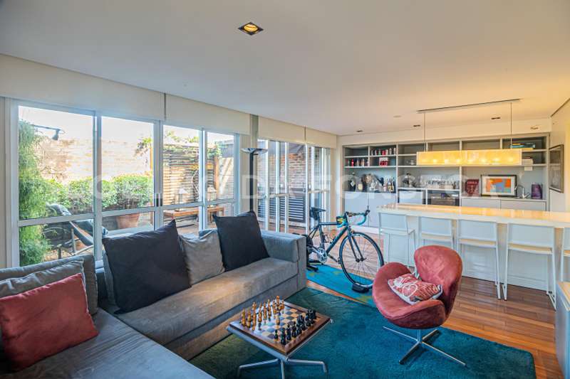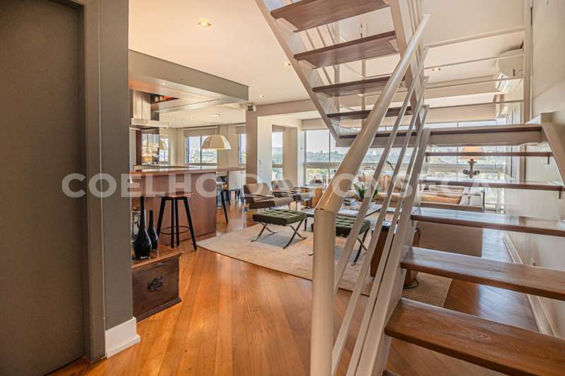 Com uma arquitetura atemporal e iluminação natural em todos os ambientes, essa cobertura oferece a sensação aconchegante de uma casa suspensa.