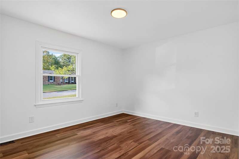 Cozy up around the fireplace in this beautifully maintained, traditional brick ranch home! Situated on a quiet street in a desirable neighborhood, this home is nestled on a private half acre lot with a fenced in backyard. The neighborhood is established with larger lots, trees and excellent proximity to parks & schools. No HOA so room to expand your footprint in the future! Great floor plan with front Living and Dining Room, with a Kitchen and casual Dining nook that opens to the Den, creating a comfortable atmosphere in the heart of the home. The Kitchen features painted oak cabinetry with decorative pulls and stainless steel appliances. Newly installed LVP flooring and freshly painted designer white throughout! This single level home features 3 spacious bedrooms and 1.5 bathrooms, including the an ensuite in the primary bedroom. Inside Laundry Room off the Kitchen. Spacious patio and large, fenced backyard with shed. Conveniently located near award-winning schools, just minutes from downtown shops, restaurants and local parks! Don't miss out on this move-in ready timeless classic home!