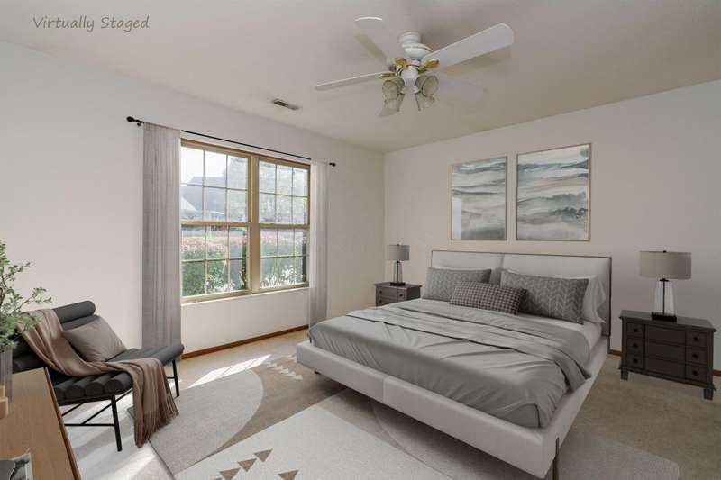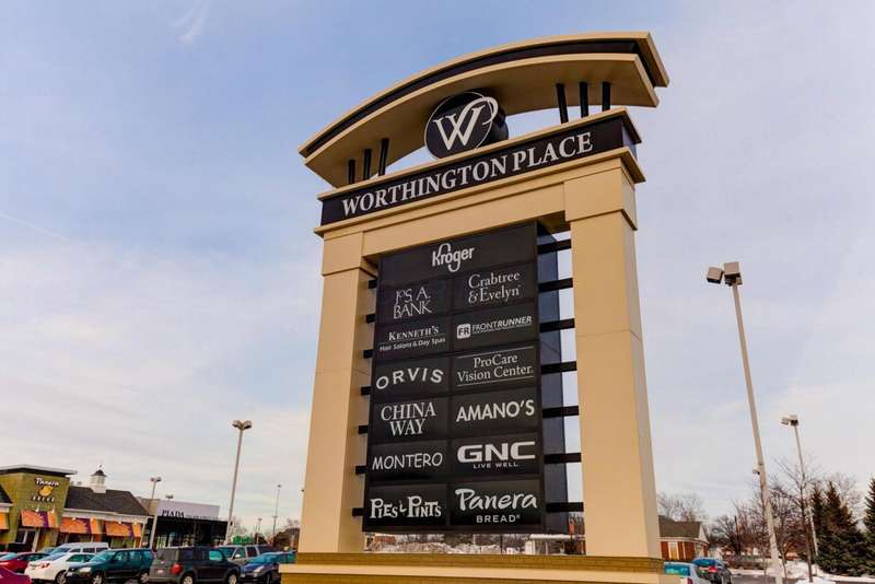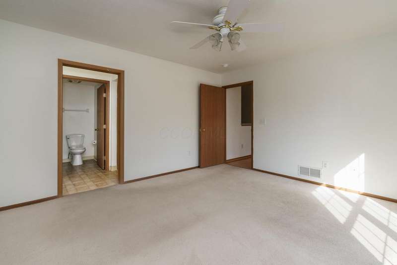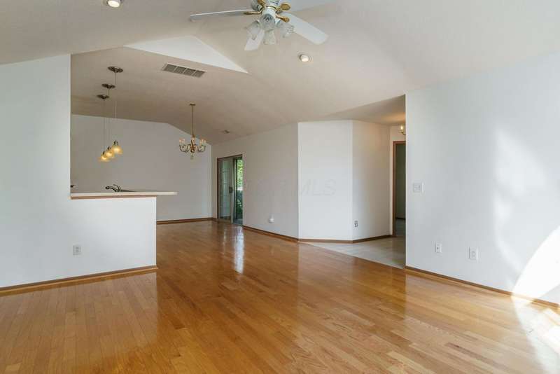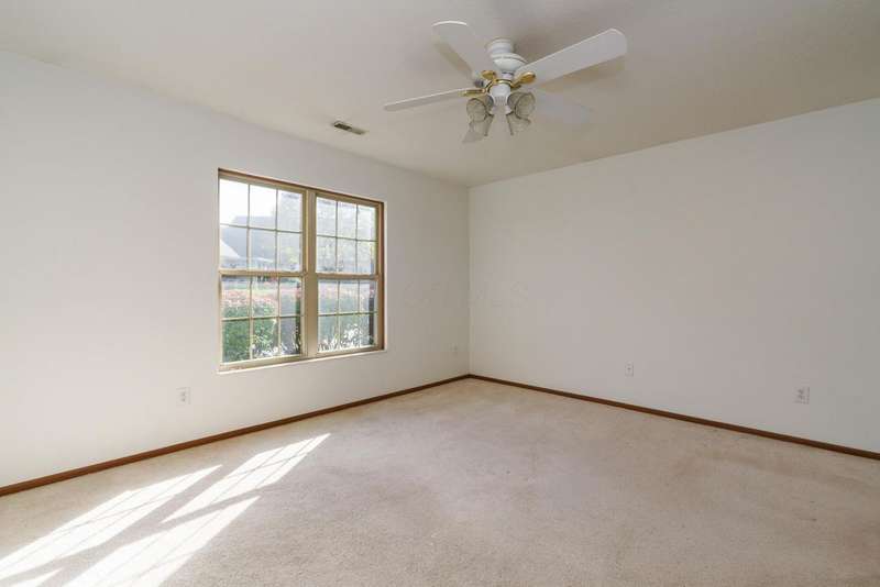 LOVELY BRICK CONDO IN WORTHINGTON SCHOOLS, ideally located near shopping, dining, and with easy access to 270 - just minutes to Worthington and Polaris. TUCKED QUIETLY at the rear of the community with a landscaped island in front and green buffer to the side, this 3-BEDROOM, 3-FULL-BATH home offers a VAULTED GREAT ROOM COMBINING living, dining, and kitchen areas with wood floors and a cozy gas fireplace. The kitchen provides ample cabinetry and white appliances, with a convenient first-floor laundry located just off the kitchen. A PRIVATE THREE-SEASON ROOM off the dining area extends the living space. The FIRST-FLOOR OWNER'S SUITE features a walk-in closet and full bath with walk-in shower, and the GUEST SUITE OFFERS vaulted ceilings and an updated bath. Upstairs, a VERSATILE THIRD BEDROOM with full bath and walk-in closet is ideal for guests, a home office, media room, or gym. Additional highlights include an ATTACHED 2-CAR GARAGE with attic storage, a community pool, beautifully maintained grounds, and plenty of guest parking.