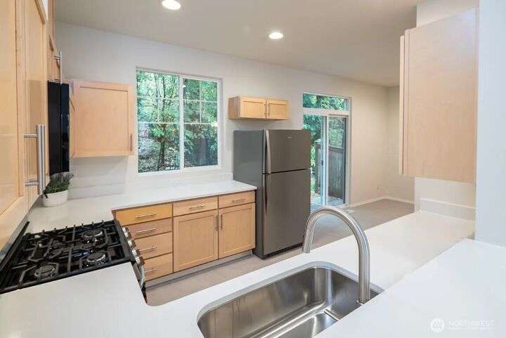 Available Now! Initial lease through March 2027. Beautifully updated 3-bed, 2.5-bath detached home in the heart of Woodinville! Located in the desirable Northshore School District, this 1,370 sq ft home offers comfort, style, & convenience. Main level features an open concept living and dining area with brand-new flooring & fresh interior paint throughout. The kitchen shines with maple cabinets, brand new quartz countertops & ample cabinet space. Cozy up to the gas fireplace in the living room or relax & enjoy the peaceful patio next to the greenbelt. Upstairs, you'll find a spacious primary suite with a private bath plus two additional bedrooms & a full bath. Enjoy a tandem 2-car garage and a low-maintenance yard. No pets firm.